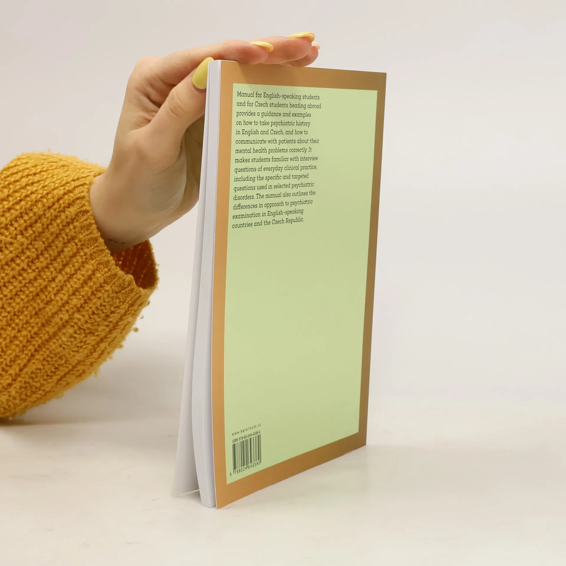 Příručka pro anglicky mluvící studenty a pro české studenty mířící do zahraničí poskytuje návod a příklady, jak správně anglicky i česky odebrat psychiatrickou anamnézu a vhodně komunikovat s pacienty o jejich psychických potížích. Seznamuje studenty s vyšetřovacími otázkami každodenní klinické praxe, včetně specifických a cílených otázek používaných u vybraných psychiatrických poruch. Příručka dále uvádí rozdíly v přístupu k psychiatrickému vyšetření v anglicky mluvících zemích a v České republice a zdůrazňuje specifické a cílené otázky používané u vybraných psychiatrických poruch.