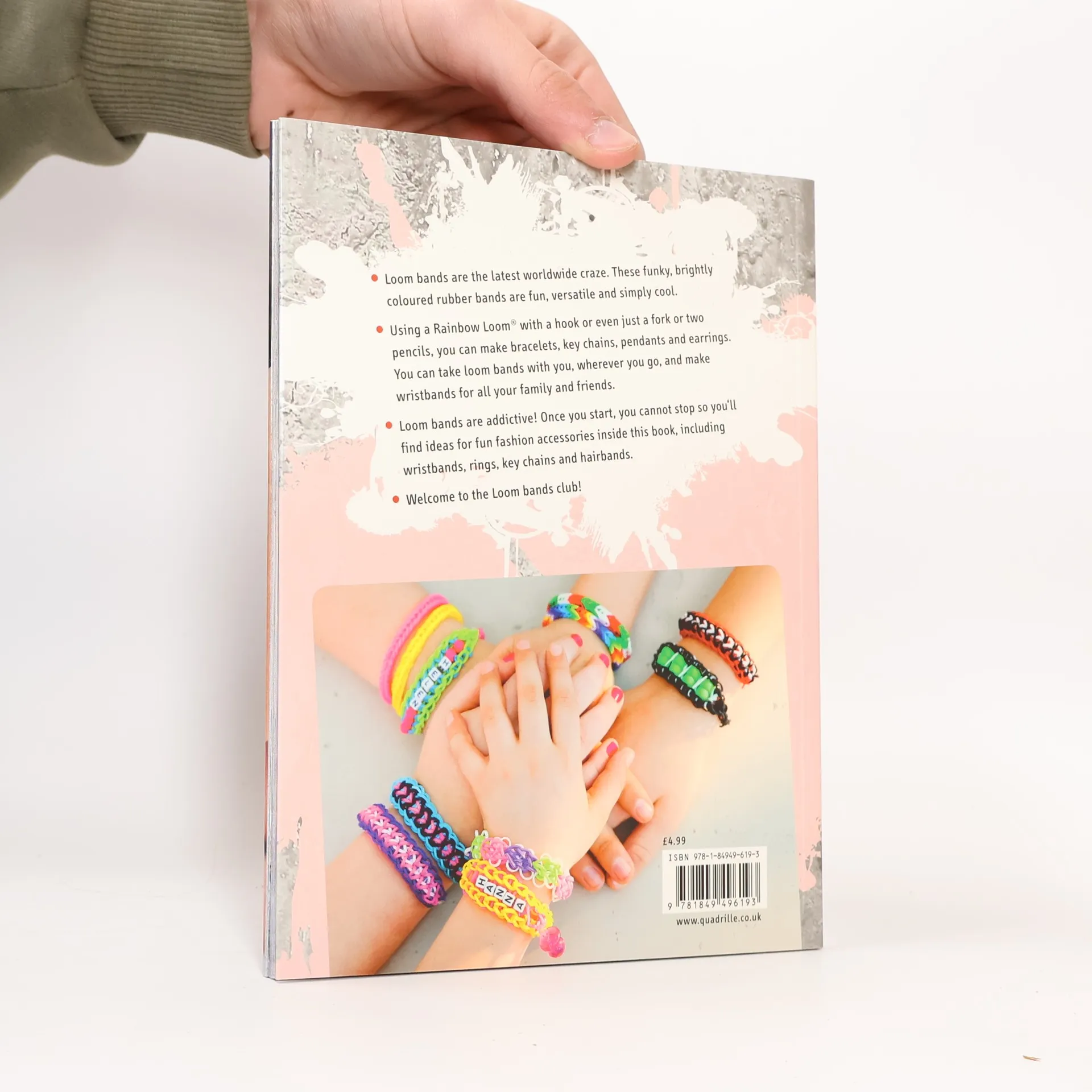 Loom bands are small, colourful rubber bands that can be transformed into bracelets and charms using either just your fingers, drinking straws, pencils, forks or a simple specially designed Rainbow Loom and hook. Loom bands are now a global phenomenon. Beginning in Asia and the US, the love for loom bands has now hit Australia and is currently sweeping through homes and schools across the country. But this is not just a playground craze - everyone from David Beckham to Miley Cyrus have been spotted wearing loom band bracelets. Now you can join in the fun! Containing ten different project designs, Loom Bands! is the perfect small book to get anyone going with their loom band jewellery.