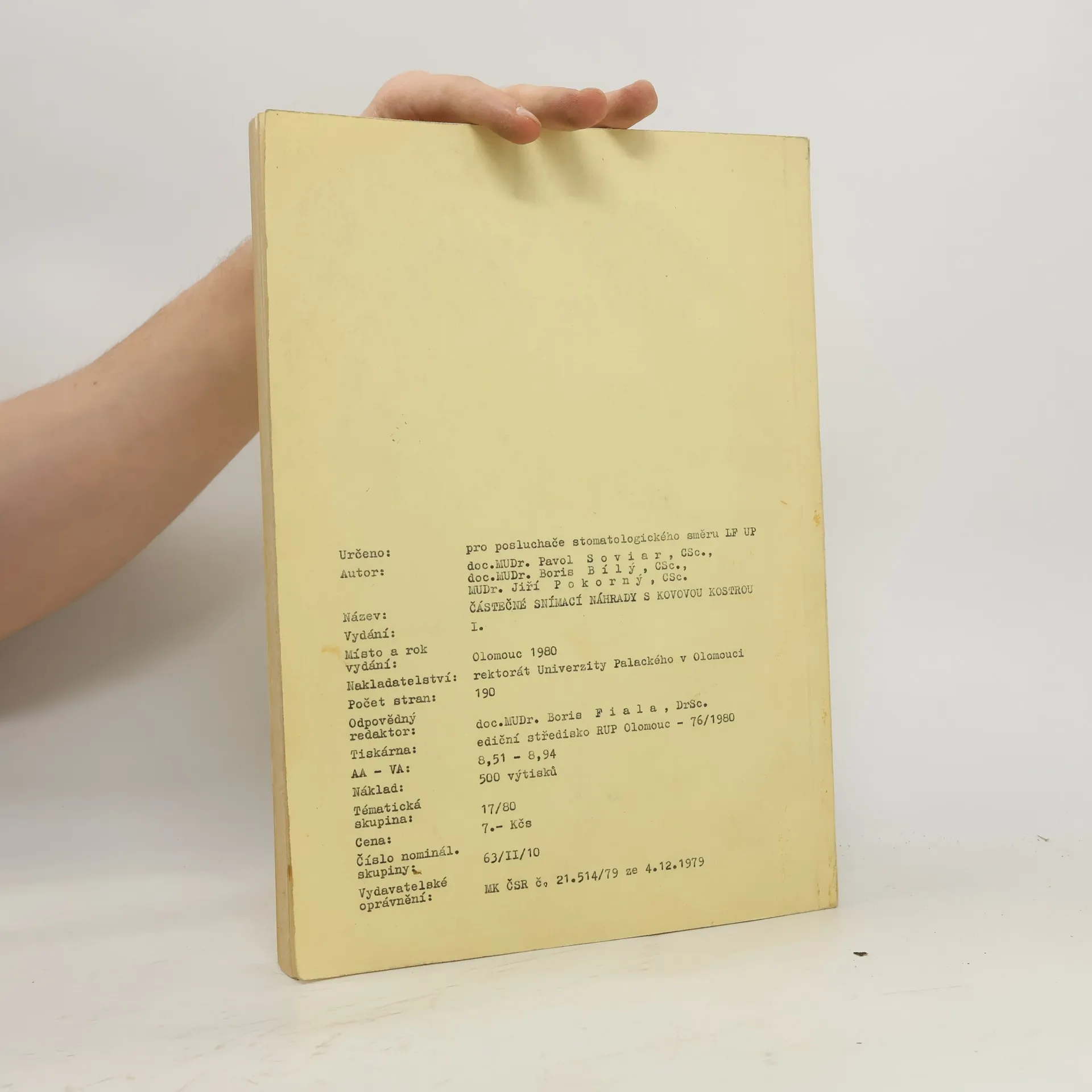 Skladem máme celkem knihy Částečné snímací náhrady s kovovou kostrou (1980).