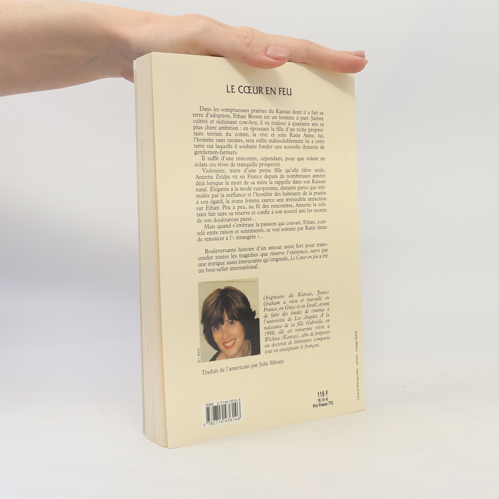 Dans les somptueuses prairies du Kansas dont il a fait sa terre d'adoption, Ethan Brown est un homme à part. Juriste cultivé et séduisant cow-boy, il va réaliser à quarante ans sa plus chère ambition : en épousant la fille d'un riche propriétaire terrien du comté, la vive et jolie Katie Anne, lui, l'homme sans racines, sera enfin indissolublement lié à cette terre sur laquelle il souhaite fonder une nouvelle dynastie de gentlemen-farmers. Il suffit d'une rencontre, cependant, pour que voient en éclats ces rêves de tranquille prospérité. Violoniste, mère d'une petite fille qu'elle élève seule, Annette Zeldin vit en France depuis de nombreuses années déjà lorsque la mort de sa mère la rappelle dans son Kansas natal. Elégante à la mode européenne, distante parce que intimidée par la méfiance et l'hostilité des habitants de la prairie à son égard, la jeune femme exerce une irrésistible attraction sur Ethan. Peu à peu, au fil des rencontres, Annette la solitaire fait taire sa réserve et confie à son nouvel ami les secrets de son douloureux passé... Mais quand s'embrase la passion qui couvait, Ethan, écartelé entre raison et sentiments, se voit sommé par Katie Anne de renoncer à " l'étrangère "... Bouleversante histoire d'un amour assez fort pour transcender toutes les tragédies que réserve l'existence, servi par une intrigue aussi émouvante qu'originale, Le Coeur en feu a été un best-seller international.
