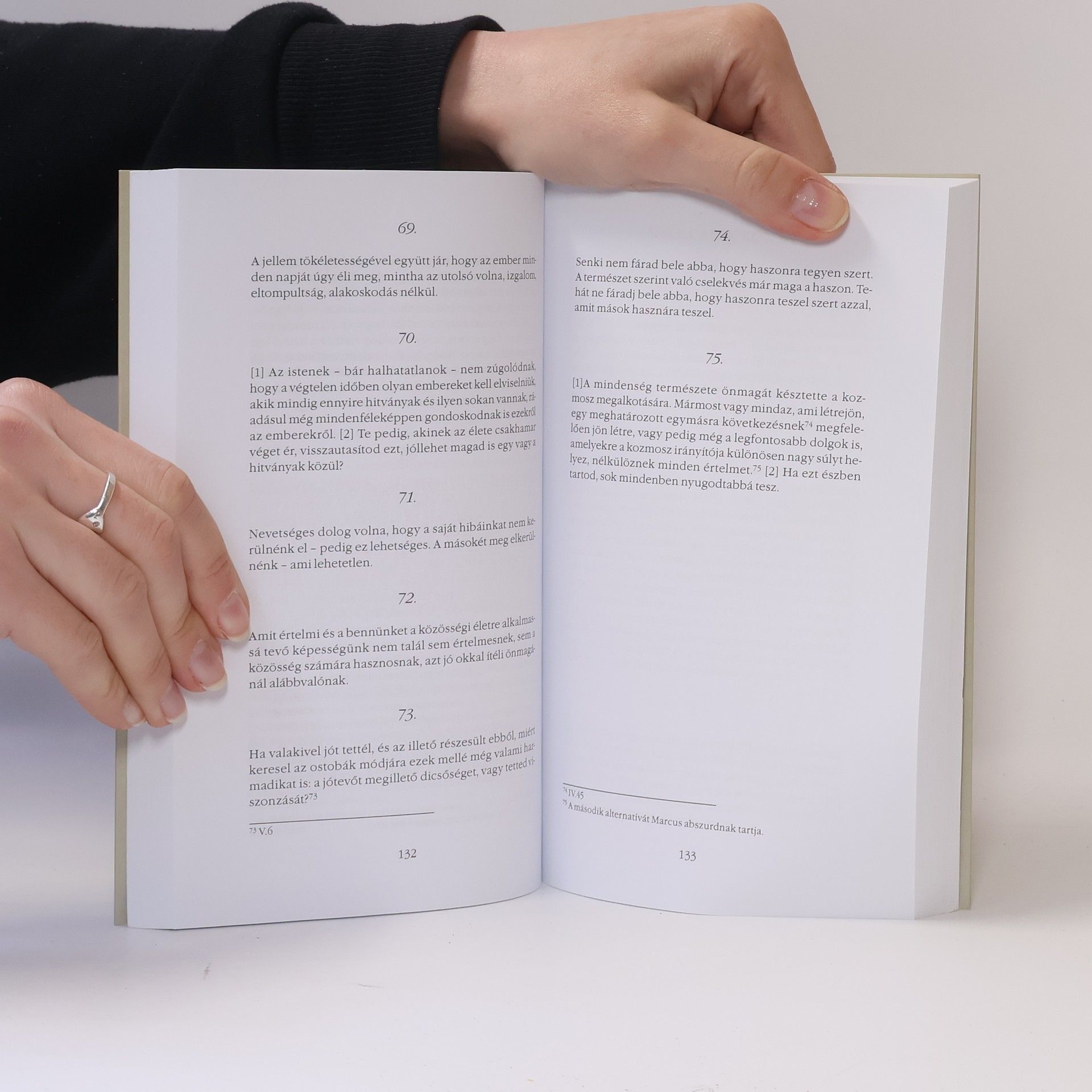 Az Elmélkedések e fordítása a sztoikus hagyományba ágyazott filozófiaként mutatja be Marcus Aurelius császár klasszikus művét."A legjobb módja a védekezésnek, ha nem leszünk hozzájuk hasonlók.Légy, mint a szirtfok, melyet a hullámok szüntelenül ostromolnak – ő viszont rendületlenül áll, és körülötte elcsendesül a habzó forgatag."