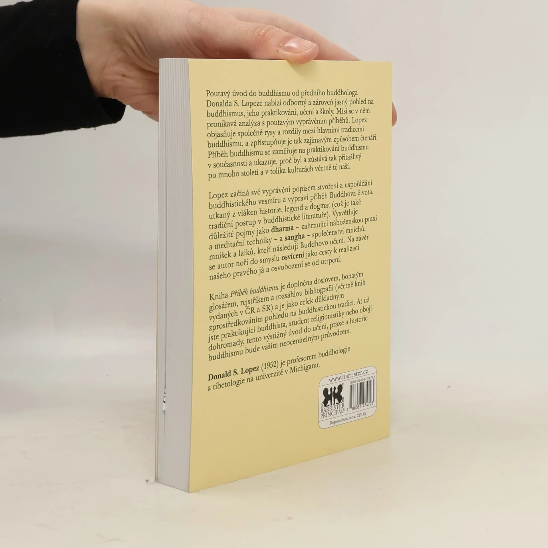 Poutavý úvod do buddhismu od předního buddhologa Donalda S. Lopeze nabízí odborný a zároveň jasný pohled na buddhismus, jeho praktikování, učení a školy. Mísí se v něm pronikavá analýza s poutavým vyprávěním příběhů. Lopez objasňuje společné rysy a rozdíly mezi hlavními tradicemi buddhismu, a zpřístupňuje je tak zajímavým způsobem čtenáři. Příběh buddhismu se zaměřuje na praktikování buddhismu v současnosti a ukazuje, proč byl a zůstává tak přitažlivý po mnoho století a v tolika kulturách včetně té naší. Lopez začíná své vyprávění popisem stvoření a uspořádání buddhistického vesmíru a vypráví příběh Buddhova života, utkaný z vláken historie, legend a dogmat (což je také tradiční postup v buddhistické literatuře). Vysvětluje důležité pojmy jako dharma – zahrnující náboženskou praxi a meditační techniky – a sangha – společenství mnichů, mnišek a laiků, kteří následují Buddhovo učení. Na závěr se autor noří do smyslu osvícení jako cesty k realizaci našeho pravého já a osvobození se od utrpení. Kniha Příběh buddhismu je doplněna doslovem, bohatým glosářem, rejstříkem a rozsáhlou bibliografií (včetně knih vydaných v ČR a SR) a je jako celek důkladným zprostředkováním pohledu na buddhistickou tradici. Ať už jste praktikující buddhista, student religionistiky nebo obojí dohromady, tento výstižný úvod do učení, praxe a historie buddhismu bude vaším neocenitelným průvodcem.