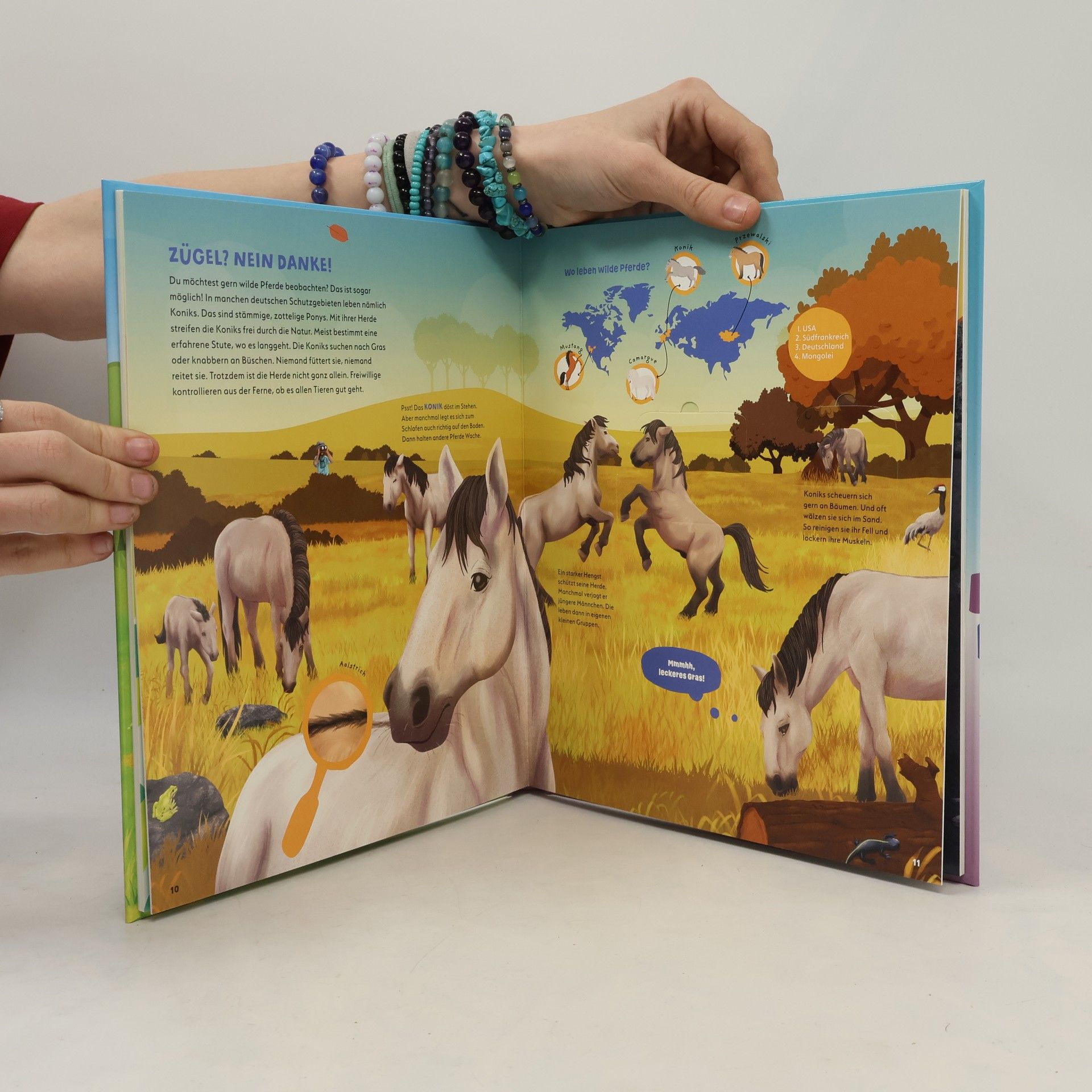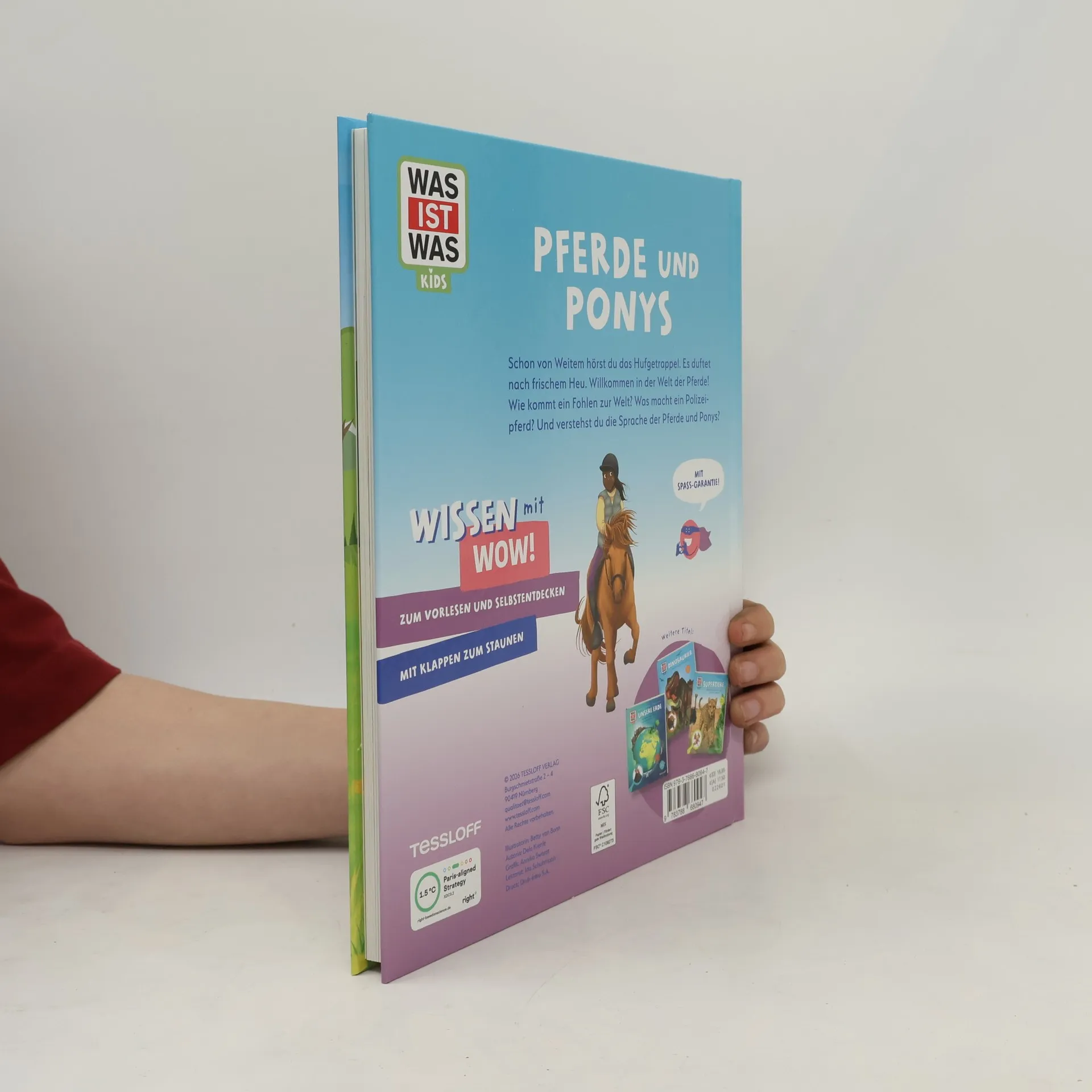 Haben Kaltblüter eigentlich kaltes Blut? Ist ein Zebra auch ein Pferd? Was fressen Pferde? Um diese und viele weitere Fragen zu klären, streifen wir durch Naturschutzgebiete, reisen nach Island und besuchen einen Reiterhof. Hier gibt es richtig viel zu tun! Alle packen mit an und wir erfahren ganz nebenbei überraschende Fakten rund um die beliebten Tiere: Ihr Alter lässt sich an den Zähnen bestimmen, das Pferde-Herz ist so groß wie eine Wassermelone und Schimmel werden erst weiß, wenn sie älter werden. WAS IST WAS Kids nimmt Kinder ab 4 Jahren mit auf die Koppel und zeigt in faszinierenden Illustrationen viel Wissenswertes über die Lieblingstiere.