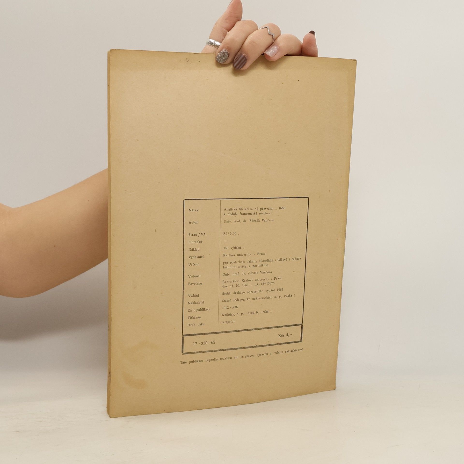 Anglická literatura od převratu r. 1688 k období francouzské revoluce, Zdeněk Vančura