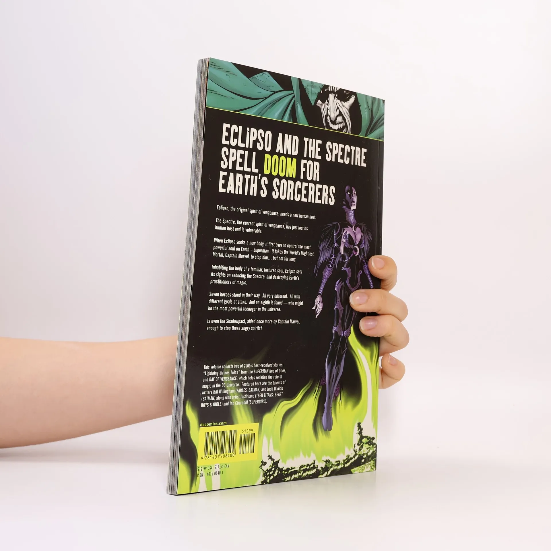 Spinning out of the events of Countdown to Infinite Crisis and leading into Infinite Crisis, the reality-bending 6-issue miniseries from writer Bill Willingham and artists Justiano, Ron Randall, and Walden Wong is collected!In this volume, Superman and Captain Marvel face off against the evil of Eclipso! Meanwhile, Ragman finds himself at the magical core of the DCU, where he ends up aligned with an unlikely ally: The Enchantress. Together with a ragtag team of magic-based heroes they must face down a foe who has sworn to wipe out all magic...the Spectre! Featuring nearly every magical character of the DCU, Day of Vengeance may mark the end of magic as we know it.Collecting: Day of Vengeance 1-6, Action Comics 826, Adventures of Superman 639, Superman 216