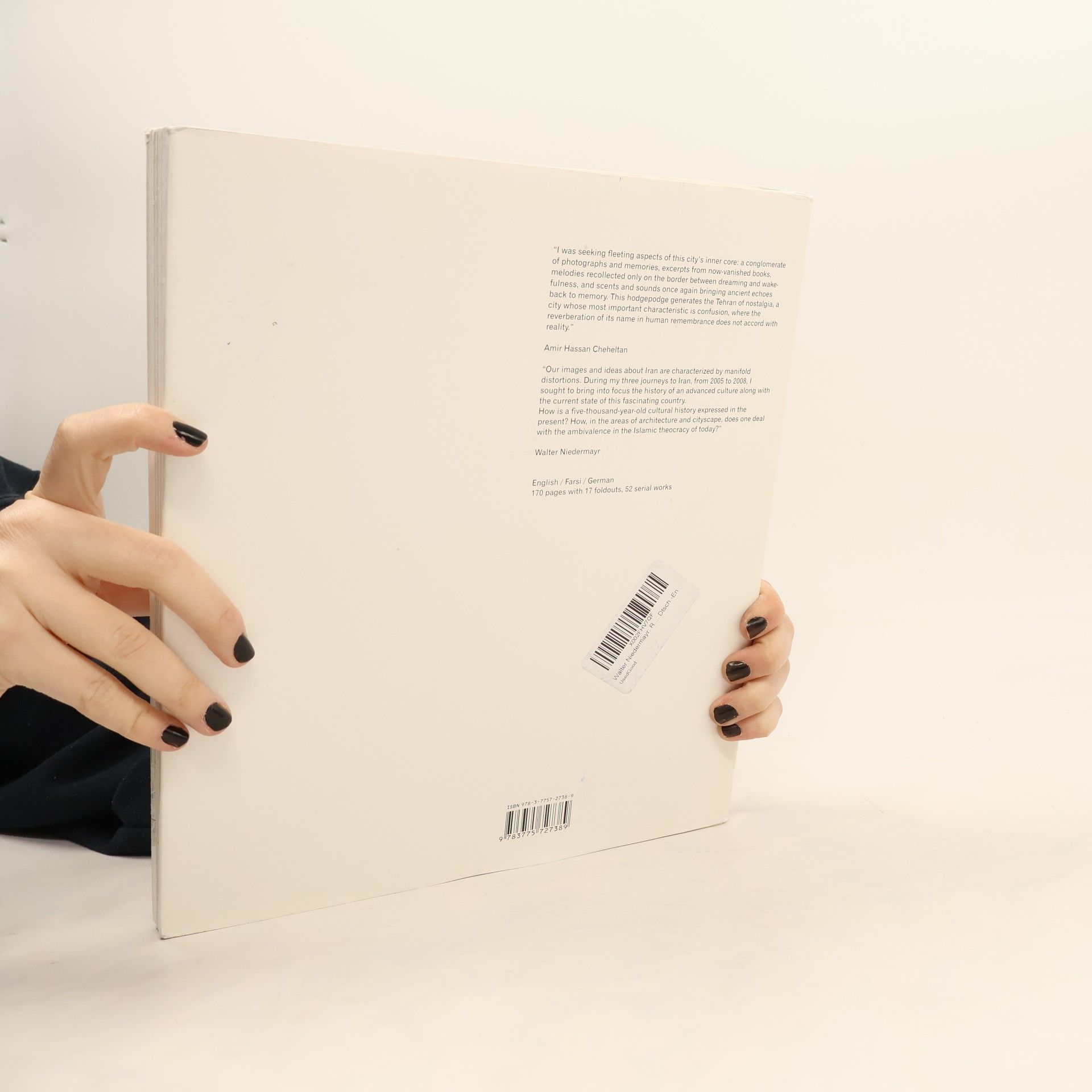 Walter Niedermayr (born 1952) is among Europe's finest contemporary photographers, a virtuoso in the portrayal of contemporary architecture and Alpine landscapes whose subtle handling of scale, diffuse light effects and desaturated color has been much imitated in recent years. Between 2005 and 2008, Niedermayr traveled in Iran, visiting Tehran, Isfahan, Yazd, Shiraz and other smaller cities and historical sites. His travels spurred the undertaking of a new series examining Iranian architecture in its cultural and historical context. The resulting photographs reveal a wild mingling of east and west as older buildings jostle with colorful billboards, beltways and apartment blocks that look as if they could be located anywhere in the world. As with Niedermayr's famous winter landscapes, the majestic, pale color composition of these photographs transports them far beyond mere documentary, towards a sense of tremendous scale and implied political narrative. Like the photographer's previous monographs (which include Titlis and Civil Operations), Recollection was developed by Niedermayr in close collaboration with its designers and publisher, and will prove to be a highlight of photobook-making.