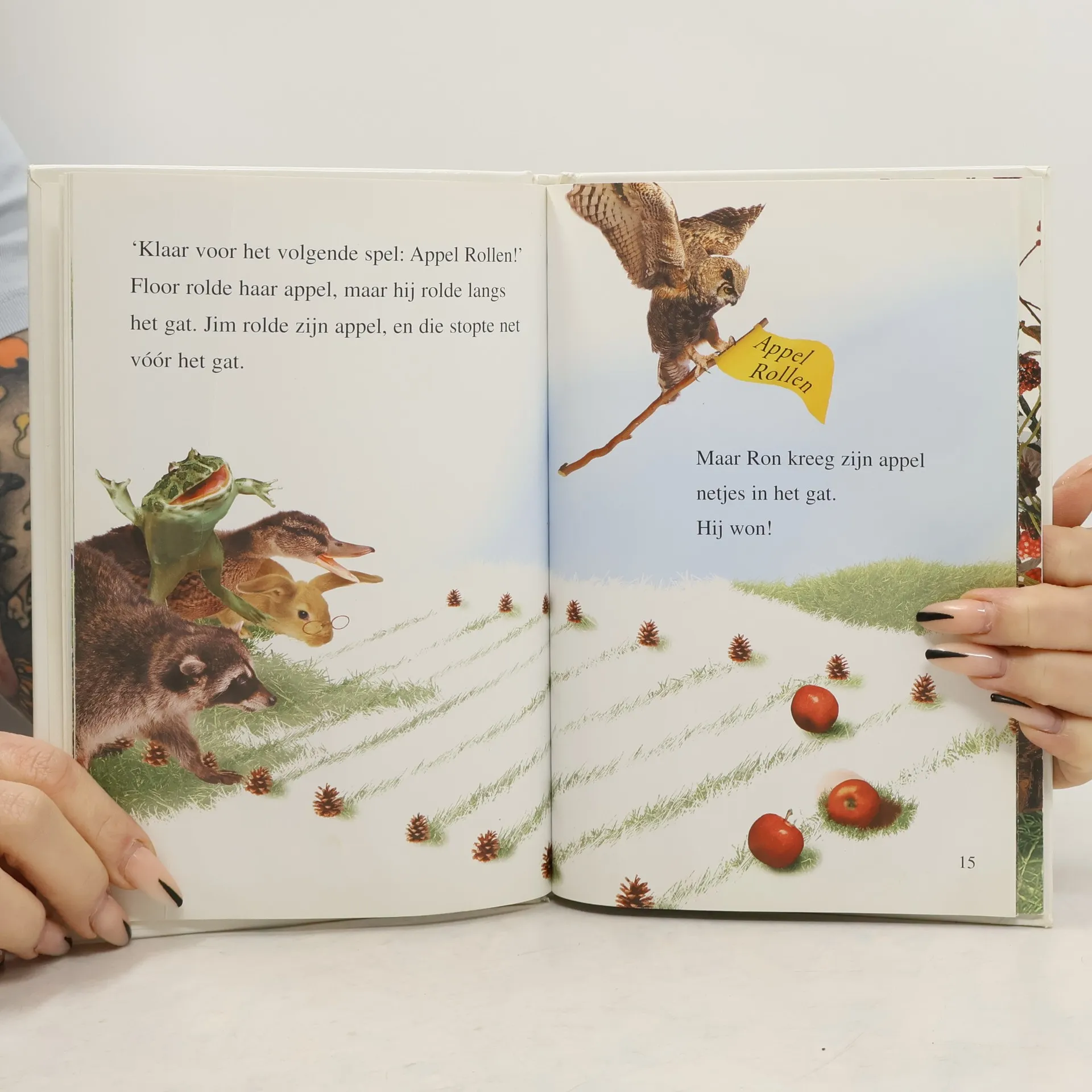 De grote uil organiseert een spelletjesdag voor alle dieren in het bos. Prentenboek met collageachtige illustraties in kleur. Vanaf ca. 3 jaar.
