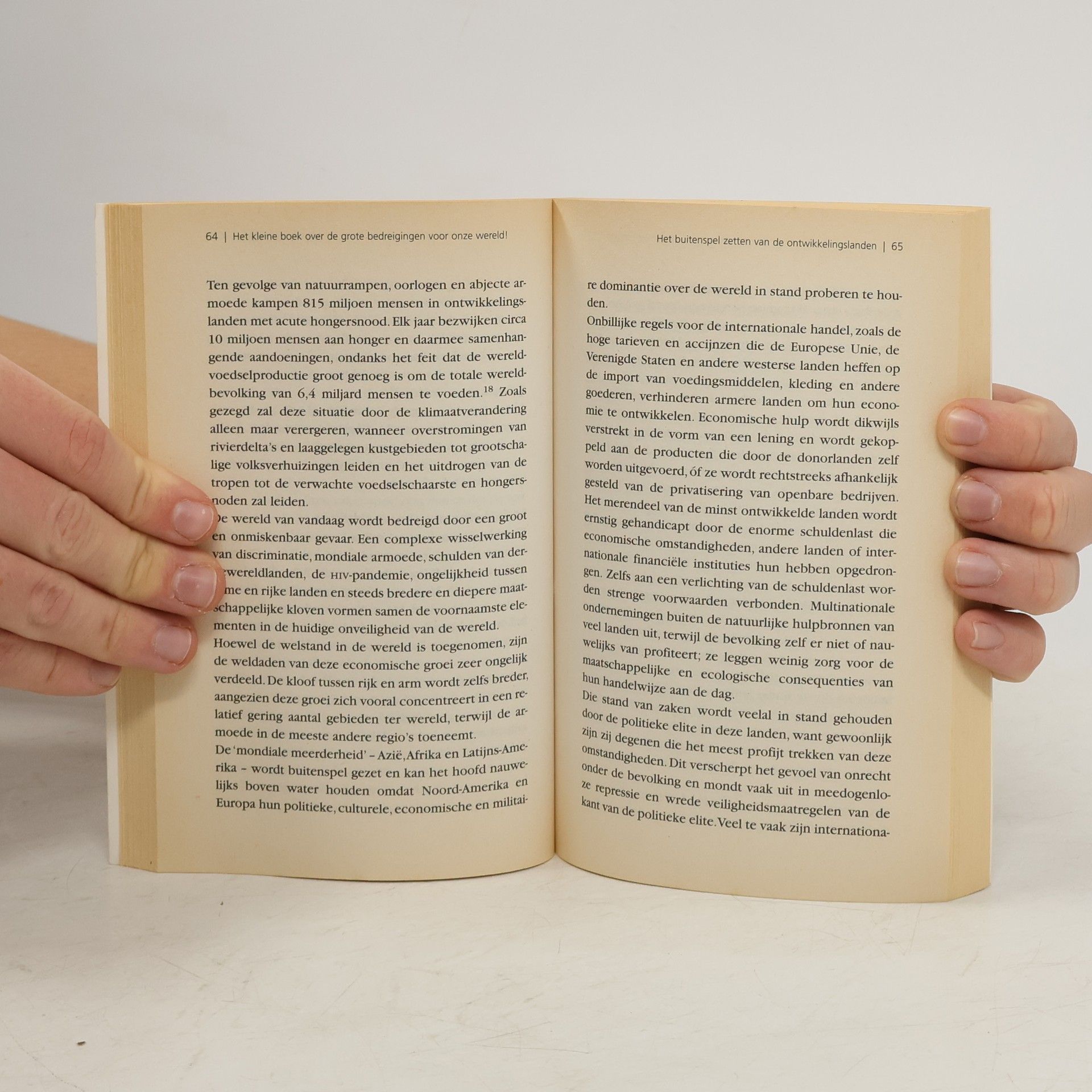 Bespreking van wereldproblemen zoals klimaatverandering, strijd om de schaarse hulpbronnen, het buitenspel zetten van de ontwikkelingslanden en wereldwijde militarisering waardoor de wereldvrede bedreigd wordt.