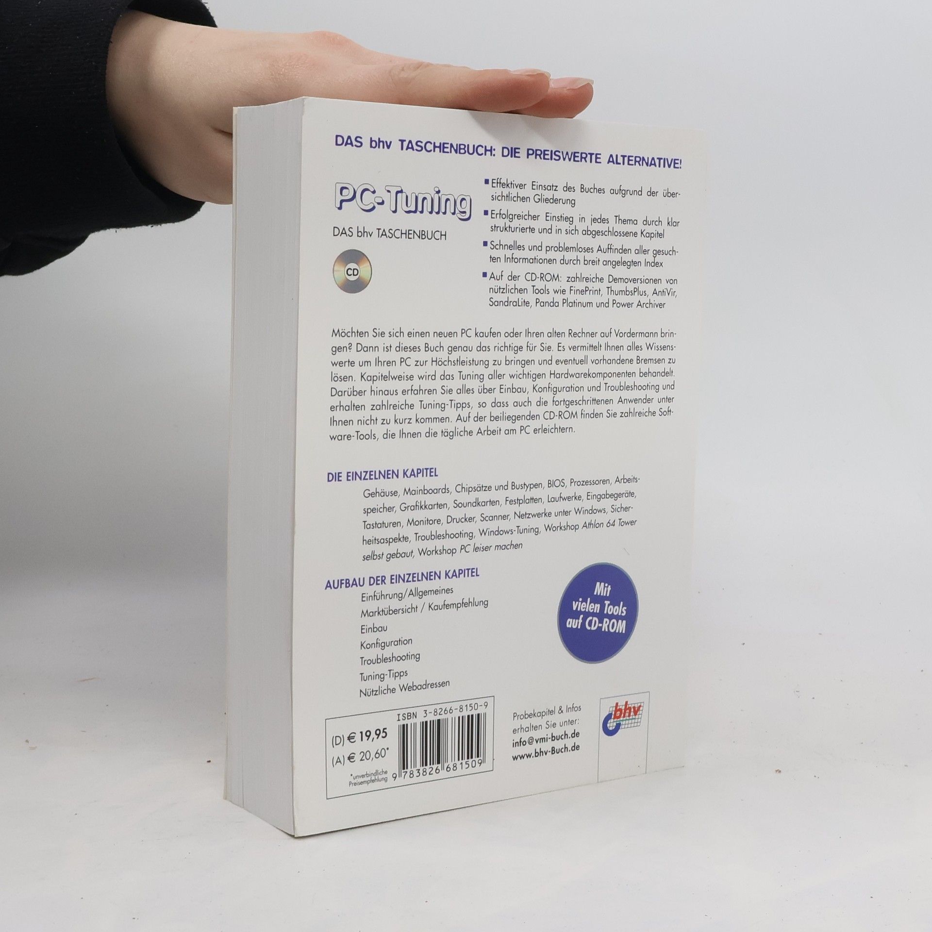 Möchten Sie sich einen neuen PC kaufen oder Ihren alten Rechner auf Vordermann bringen? Dann ist dieses Buch genau das richtige für Sie. Es vermittelt Ihnen alles Wissenswerte um Ihren PC zur Höchstleistung zu bringen und eventuell vorhandene Bremsen zu lösen. Kapitelweise wird das Tuning aller wichtigen Hardwarekomponenten behandelt. Darüber hinaus erfahren Sie alles über Einbau, Konfiguration und Troubleshooting und erhalten zahlreiche Tuning-Tipps, so dass auch die fortgeschrittenen Anwender unter Ihnen nicht zu kurz kommen. Auf der beiliegenden CD-ROM finden Sie zahlreiche Demoversionen von nützlichen Tools wie FinePrint, ThumbsPlus, AntiVir, SandraLite, Panda Platinum und Power Archiver.