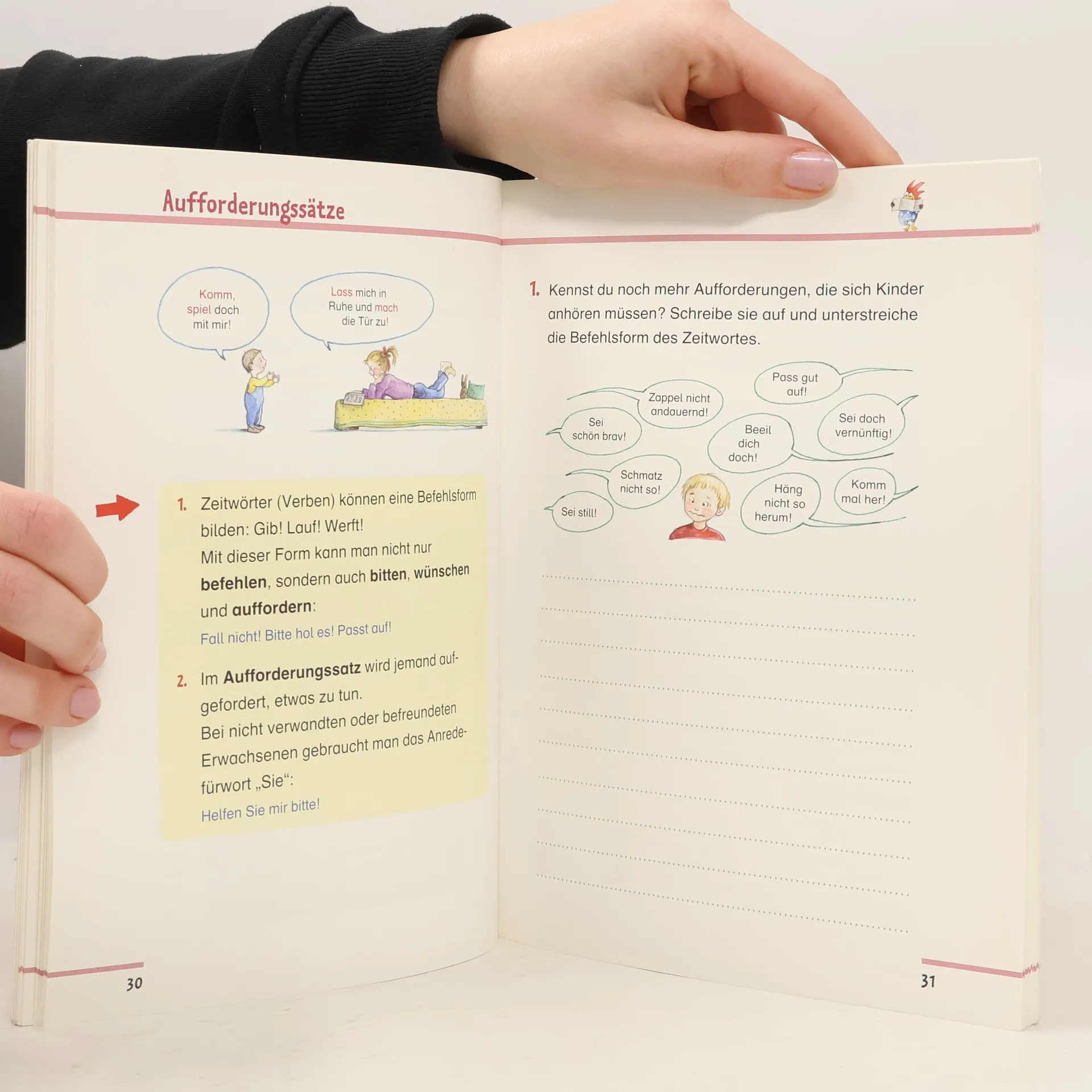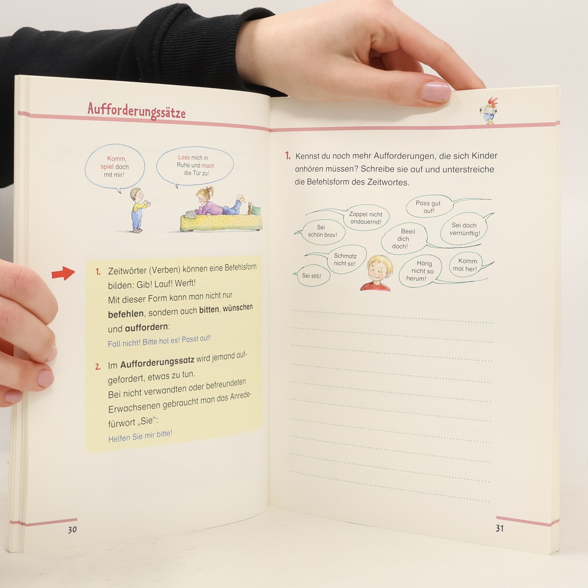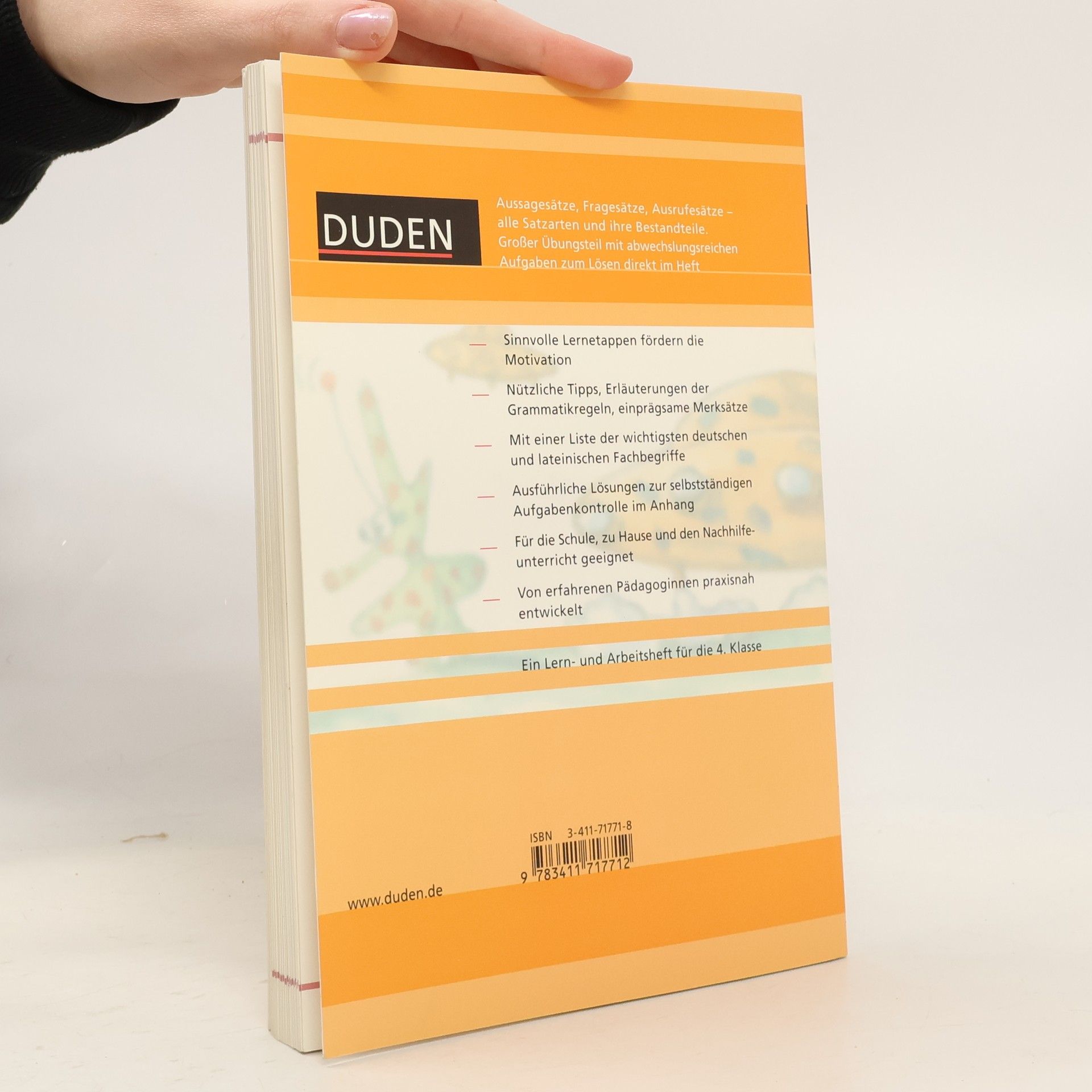 Ich lerne Satzarten und Satzglieder kennen: Die Einführung betrifft die Funktion der Sprache allgemein, die Tipps über Arbeitsweise und Lerntechnik sind Vorschläge für die Bearbeitung des vorliegenden Heftes. Satzarten wie Fragesatz, Aussagesatz, Aufforderungssatz und Ausrufesatz werden definiert und kenntlich gemacht. Satzglieder, Satzgegenstand und Satzaussage sowie Umstandsbestimmungen werden unterschieden. Schliesslich werden Satzverbindungen und die wörtliche Rede behandelt. Auch die lateinischen Fachbegriffe sind angegeben. Mit kleinen Übungen direkt im Heft werden die Erkenntnisse gesichert. Ein Schlusstest dient der Lernkontrolle und ein Glossar gibt über die vielen Begriffe Auskunft. Das Heft ist übersichtlich gestaltet und sparsam mit Illustrationen angereichert. Ab 10 Jahren, ausgezeichnet, Ruedi W. Schweizer.