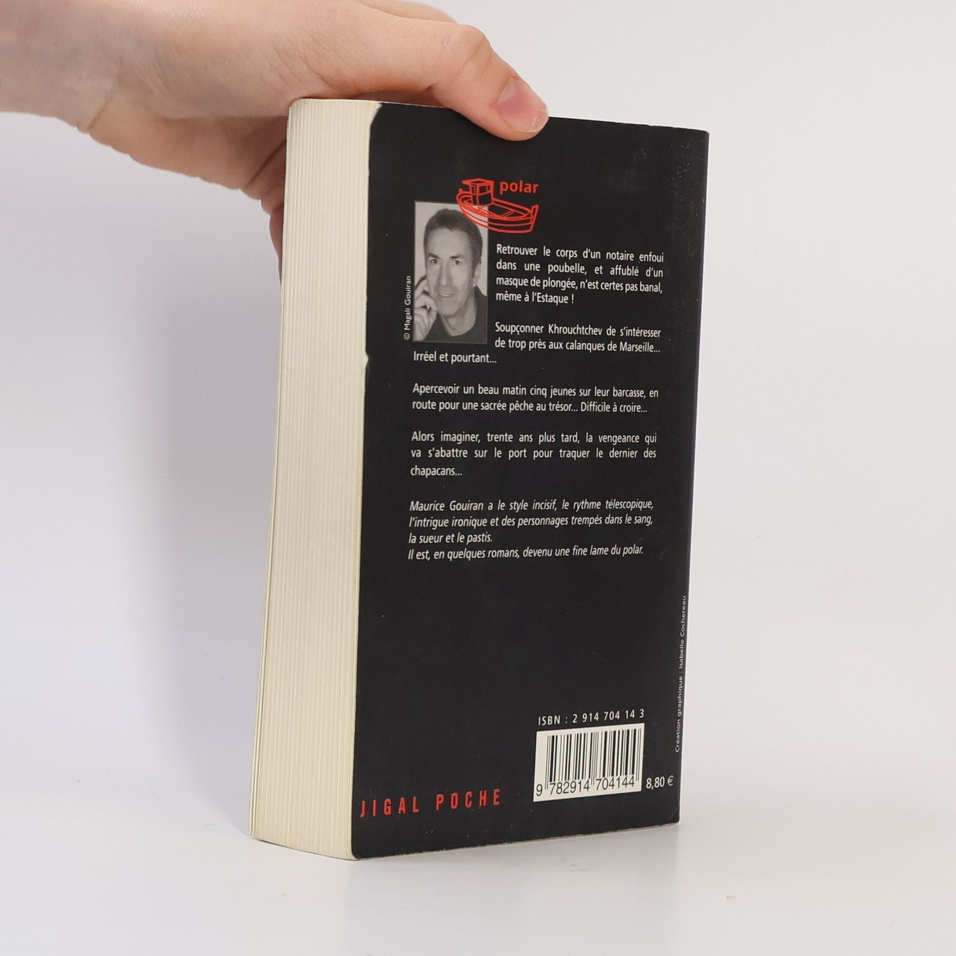 Retrouver le corps d'un notaire enfoui dans une poubelle, et affublé d'un masque de plongée, n'est certes pas banal, même à l'Estaque ! Soupçonner Khrouchtchev de s'intéresser de trop près aux calanques de Marseille... Irréel et pourtant... Apercevoir un beau matin cinq jeunes sur leur barcasse, en route pour une sacrée pêche au trésor... Difficile à croire... Alors imaginer, trente ans plus tard, la vengeance qui va s'abattre sur le port pour traquer le dernier des chapacans... Maurice Gouiran a le style incisif, le rythme télescopique, l'intrigue ironique et des personnages trempés dans le sang, la sueur et le pastis. Il est en quelques romans, devenu une fine lame du polar.