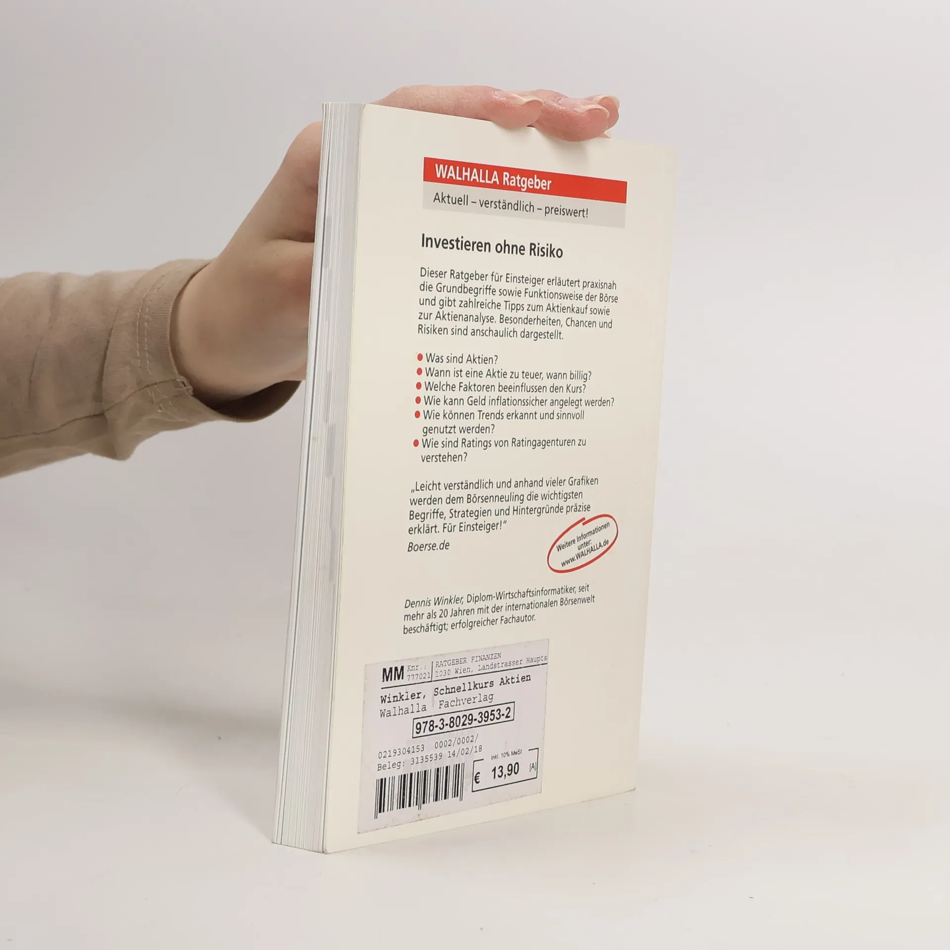 Investieren ohne Risiko Der kompakte Ratgeber Schnellkurs Aktien für Einsteiger erläutert praxisnah die Grundbegriffe sowie Funktionsweise der Börse und gibt zahlreiche Tipps zum Aktienkauf sowie zur Aktienanalyse. Besonderheiten, Chancen und Risiken sind anschaulich dargestellt. Was sind Aktien? Wann ist eine Aktie zu teuer, wann zu billig? Welche Faktoren beeinflussen den Kurs? Wie kann Geld inflationssicher angelegt werden? Wie können Trends erkannt und sinnvoll genutzt werden? Wie sind Ratings von Ratingagenturen zu verstehen? Welche Möglichkeiten bieten Spin-offs, Futures, Splits?