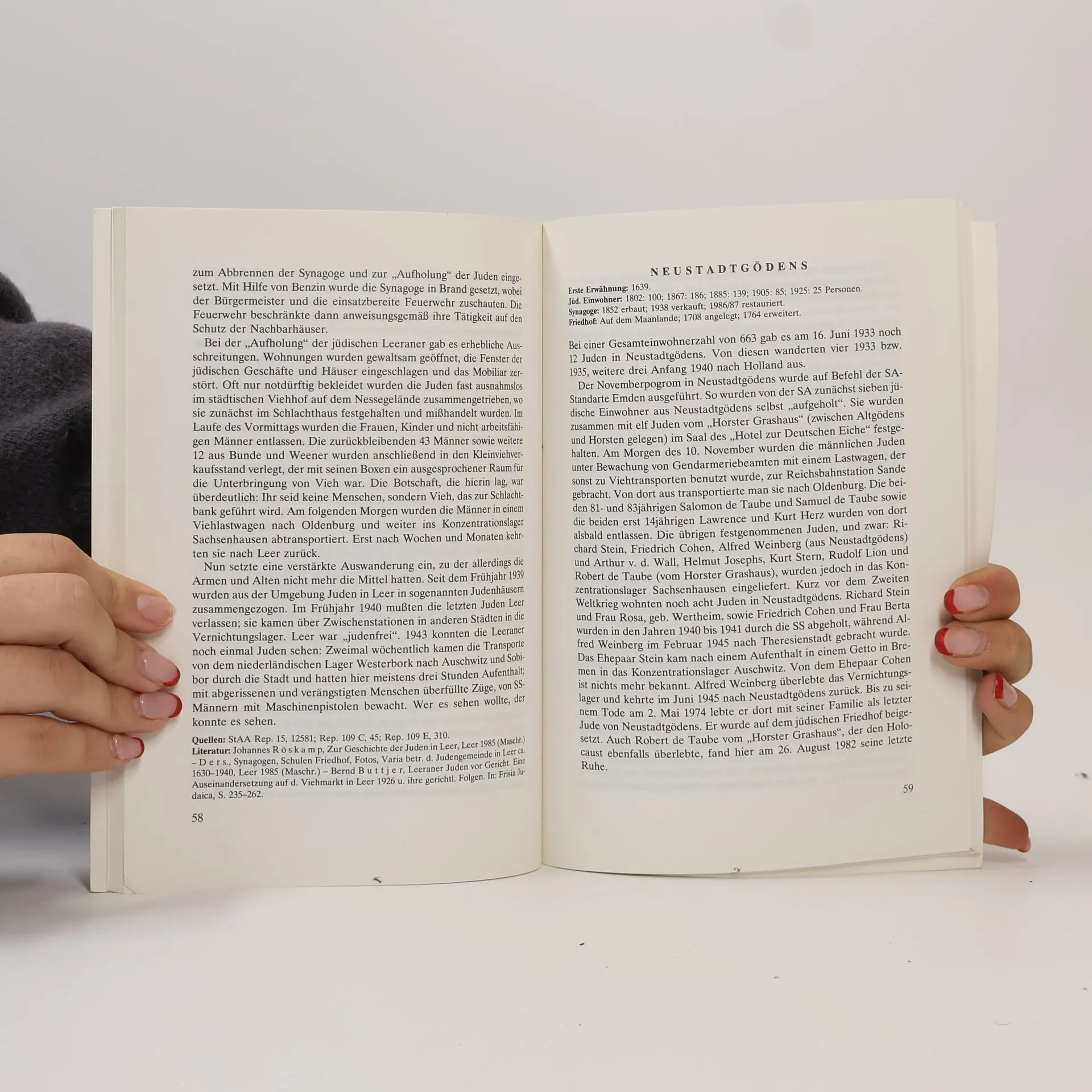 A catalogue of an exhibition, November 1988-April 1989. Surveys the persecution of Jews in Germany in general, focusing especially on the events of the "Kristallnacht" pogrom in the region of East Frisia. The members of the small Jewish communities were humiliated and physically attacked, and their synagogues were burnt. Gives details of the events in each locality.