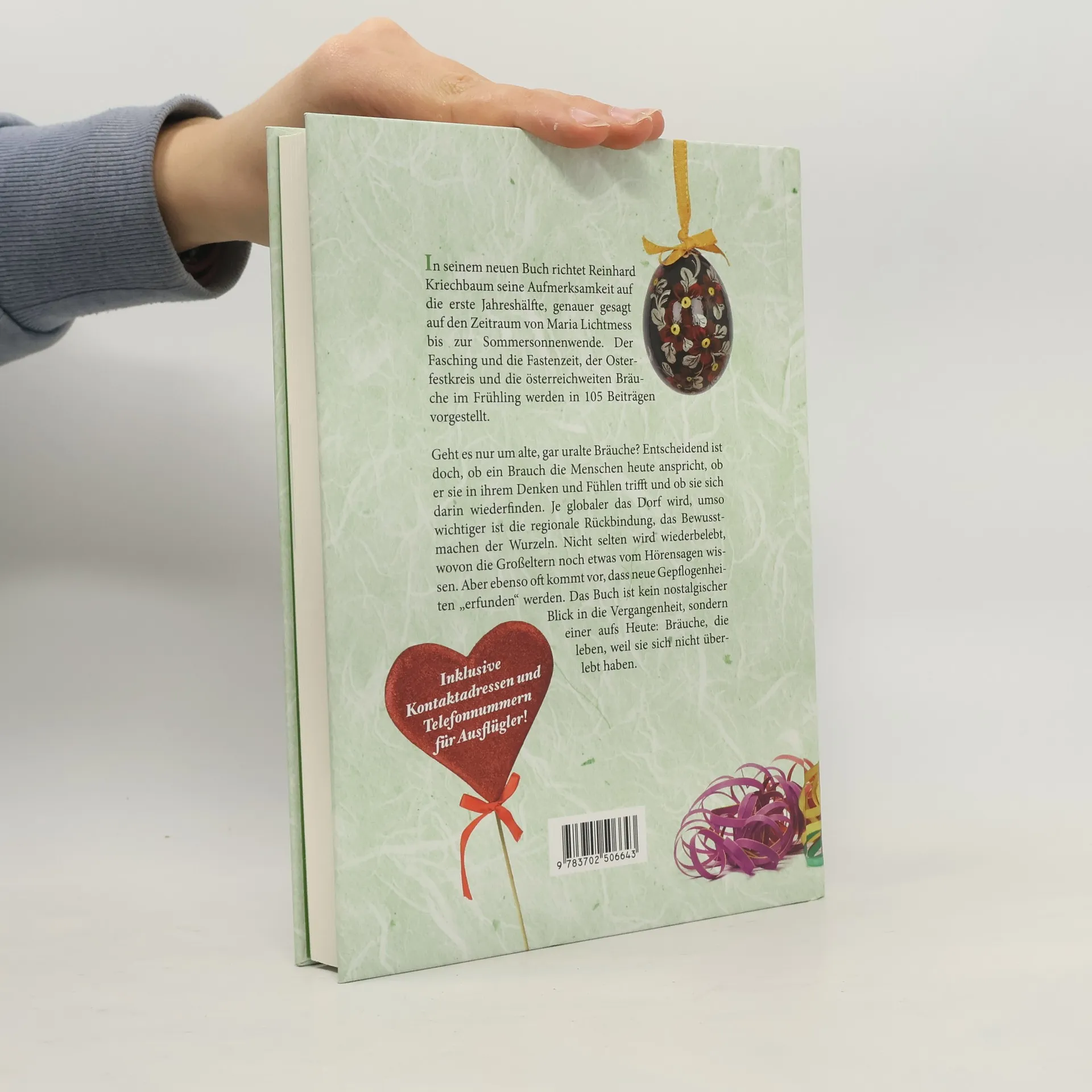 Frühlingsbräuche in Österreich Nach dem äußerst erfolgreichen Buch „Weihnachtsbräuche in Österreich“ richtet Reinhard Kriechbaum nun den Fokus auf die erste Jahreshälfte, genauer gesagt auf den Zeitraum von Maria Lichtmess bis zur Sommersonnenwende. Der Fasching und die Fastenzeit, der Osterfestkreis und die österreichweiten Bräuche im Frühling werden vorgestellt. Geht es nur um alte, gar uralte Bräuche? Entscheidend ist doch, ob ein Brauch die Menschen heute anspricht, ob er sie in ihrem Denken und Fühlen trifft und ob sie sich darin wiederfinden. Je globaler das Dorf wird, umso wichtiger ist die regionale Rückbindung, das Bewusstmachen der Wurzeln. Nicht selten wird wiederbelebt, wovon die Großeltern noch etwas vom Hörensagen wissen. Aber genauso oft kommt vor, dass neue Gepflogenheiten „erfunden“ werden. Das Buch ist, wie schon jenes über die Weihnachtsbräuche, kein nostalgischer Blick in die Vergangenheit, sondern einer aufs Heute: Bräuche, die leben, weil sie sich nicht überlebt haben.