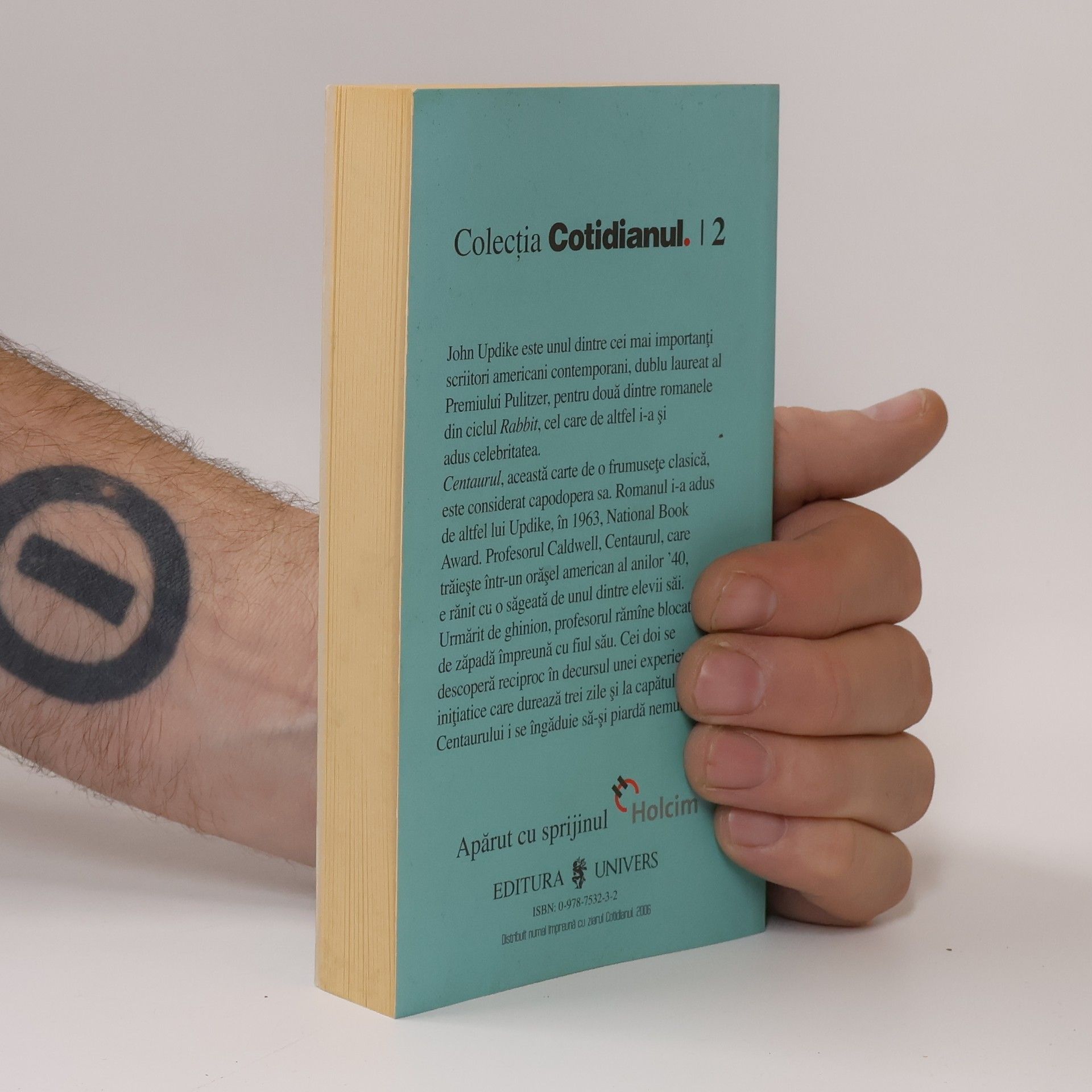 Nascut in 1932 in Pennsylvania, Updike si-a petrecut cea mai mare parte a copilariei intr-o ferma izolata din Shillington. Fiind un copil bilbiit si bolnav de psoriazis, a fost in permanenta incurajat de mama lui sa se exprime in scris. A absolvit Universitatea Harvard summa cum laudae, cu o diploma in literatura engleza si pentru o buna bucata de timp lucreaza la “The New Yorker”, ca simplu redactor. In 1958, Updike debuteaza cu volumul de versuri “The Carpenter Hen”, devenind ulterior unul dintre cei mai prolifici scriitori americani. A publicat aproape un volum pe an, opera sa cuprinzind 22 de romane si peste 10 volume de proza scurta, versuri si critica literara. Cea mai cunoscuta lucrare a sa este tetralogia “Rabbit”, care i-a adus doua premii Pulitzer pentru fictiune. Celebru pentru scenele plastice de sex, Updike exploreaza adesea teme legate de eros, credinta, moarte si relatiile dintre acestea. Publicul romin este familiarizat cu titluri precum “Centaurul”, “S”, “O luna de duminici” si “Versiunea lui Roger”. Updike apreciaza viata din punct de vedere calitativ, si nu cantitativ. Poate de aceea comparatia dintre muntele Olimp si curtea unui liceu pare atit de fireasca. Roman autofictional, “Centaurul”, o carte de o frumusete clasica, este considerat capodopera sa. Acest roman i-a adus de altfel lui Updike, in 1963, National Book Award. Profesorul Caldwell, Centaurul, care traieste intr-un orasel american al anilor ’40, este ranit cu o sageata de unul dintre elevii sai. Urmarit de ghinion, profesorul ramine ramine blocat de zapada impreuna cu fiul sau. Cei doi se descopera reciproc in decursul unei experiente initiatice care dureaza trei zile si la capatul careia Centaurului i se ingaduie sa-si piarda nemurirea.