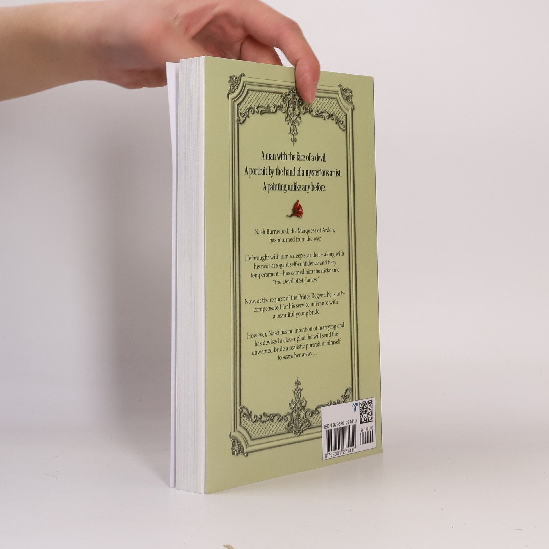 "Nash Burnwood, the Marquess of Arden, has returned from the war. He brought with him a deep scar that - along with his near arrogant self-confidence and fiery temperament - has earned him the nickname 'the Devil of St. James'. Now, at the request of the Prince Regent, he is to be compensated for his service in France with a beautiful young bride. However, Nash has no intention of marrying and has devised a clever plan: he will send the unwanted bride a realistic portrait of himself to scare her away..." --Back cover.