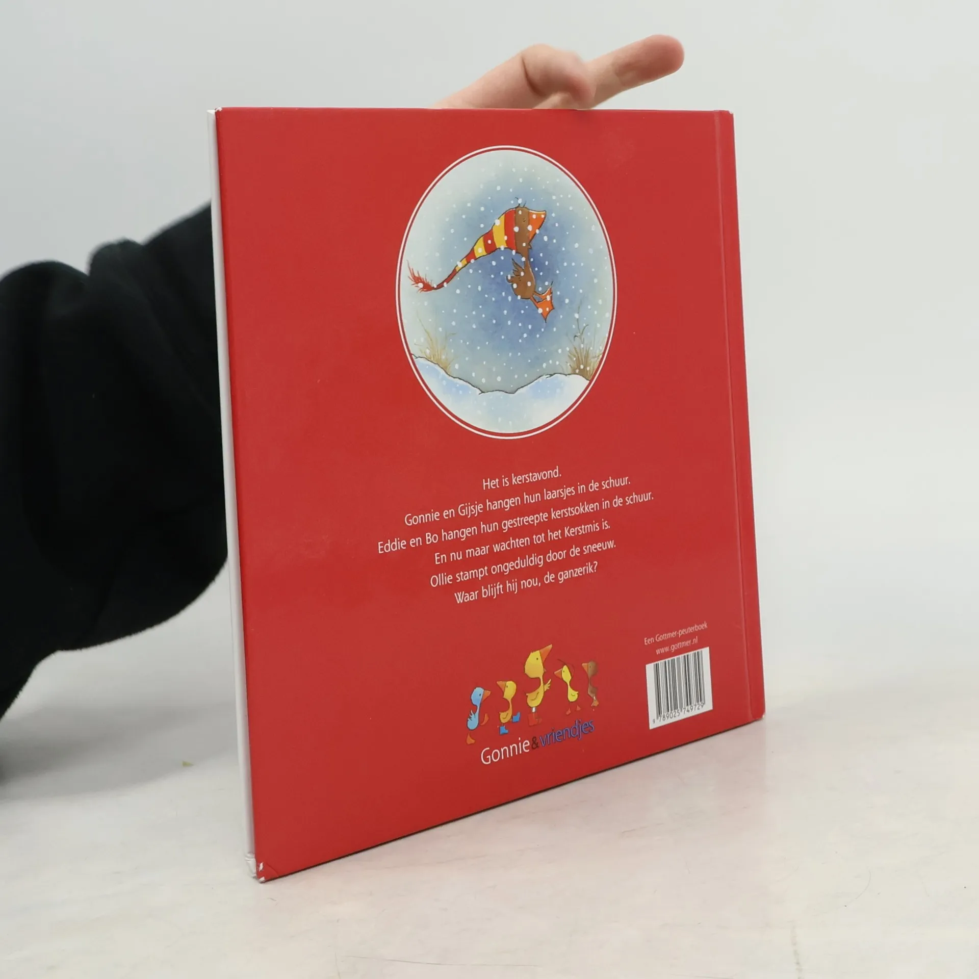 Het is Kerstavond. Gonnie en Gijsje hangen hun laarsjes in de schuur. Eddie en Bo hangen hun gestreepte kerstsokken in de schuur. En nu maar wachten tot het Kerstmis is. Ollie stampt ongeduldig door de sneeuw. Waar blijft hij nou, de ganzerik?