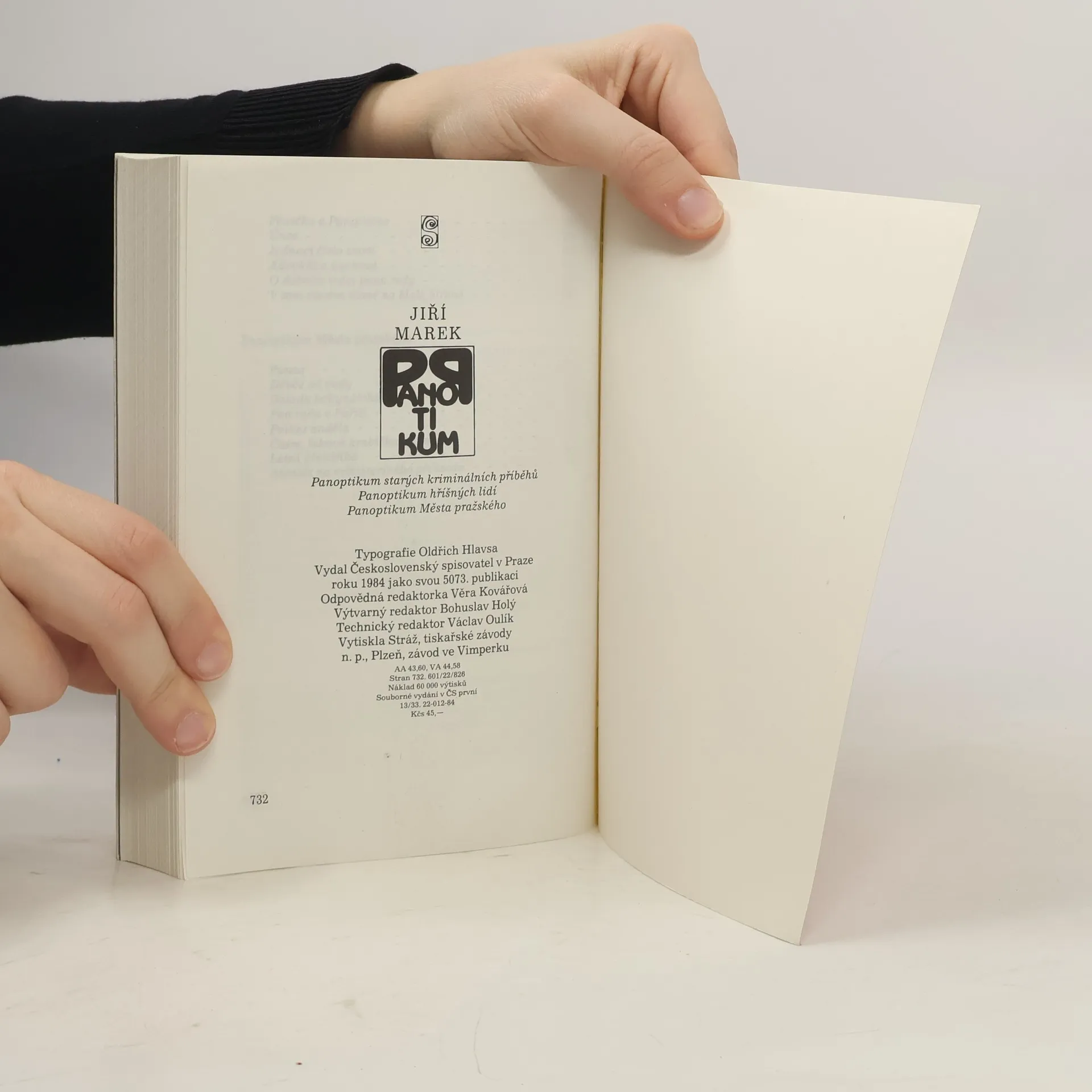 Kniha je souborným vydáním tří knih z pražské galérky. Panoptikum starých kriminálních příběhů, Panoptikum hříšných lidí a Panoptikum Města pražského. v ČS: 1. souborné vydání Pozn.: - Vydáno pod autorovým pseudonymem Jiří Marek. - Autor obálky M. Jaroš není v tiráži aniv impresu uveden.