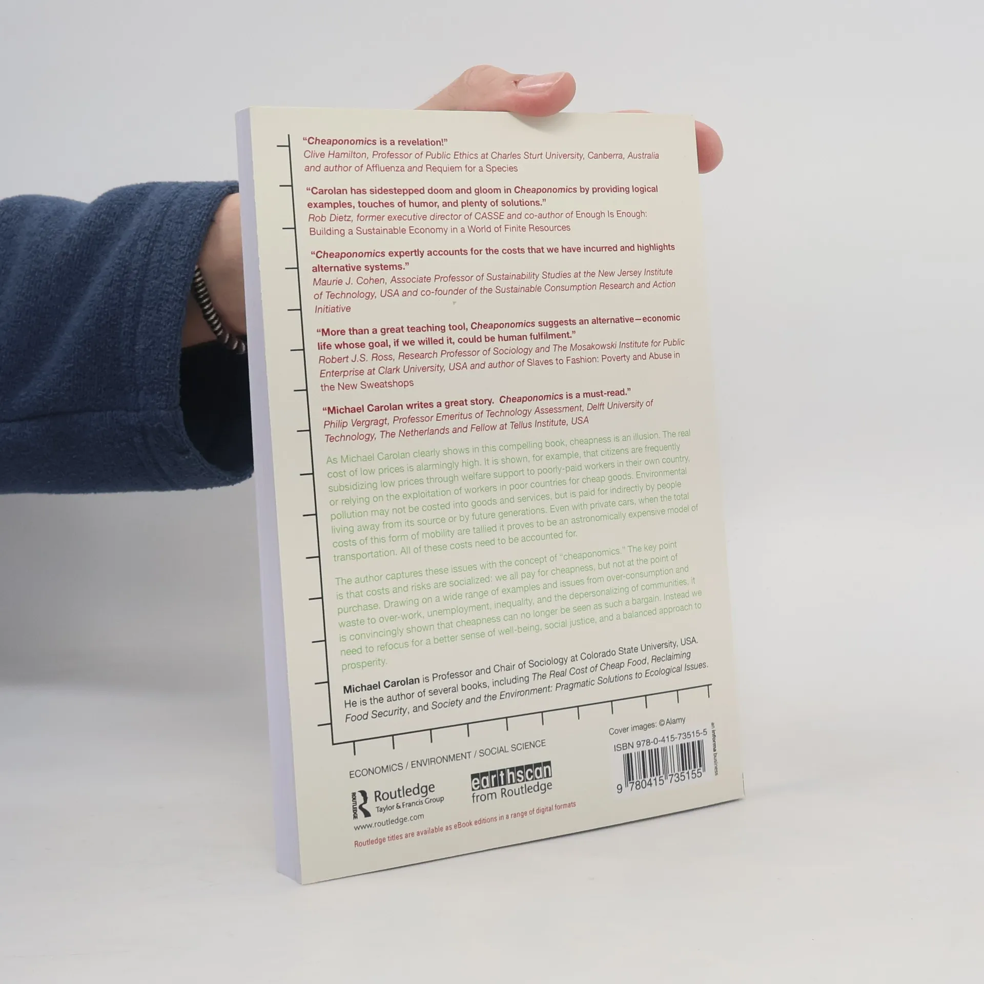 Do you really think you are getting a good deal when given that free mobile phone for switching service providers, if a multinational retailer undercuts its competitors or by the fact that food is relatively cheaper today in many countries than ever before? Think again! As Michael Carolan clearly shows in this compelling book, cheapness is an illusion. The real cost of low prices is alarmingly high. It is shown for example that citizens are frequently subsidising low prices through welfare support to poorly-paid workers in their own country, or relying on the exploitation of workers in poor countries for cheap goods. Environmental pollution may not be costed into goods and services, but is paid for indirectly by people living away from its source or by future generations. Even with private cars, when the total costs of this form of mobility are tallied it proves to be an astronomically expensive model of transportation. All of these costs need to be accounted for. The author captures these issues by the concept of "cheaponomics." The key point is that costs and risks are socialised: we all pay for cheapness, but not at the point of purchase. Drawing on a wide range of examples and issues from over-consumption and waste to over-work, unemployment, inequality, and the depersonalising of communities, it is convincingly shown that cheapness can no longer be seen as such a bargain. Instead we need to refocus for a better sense of well-being, social justice and a balanced approach to prosperity.