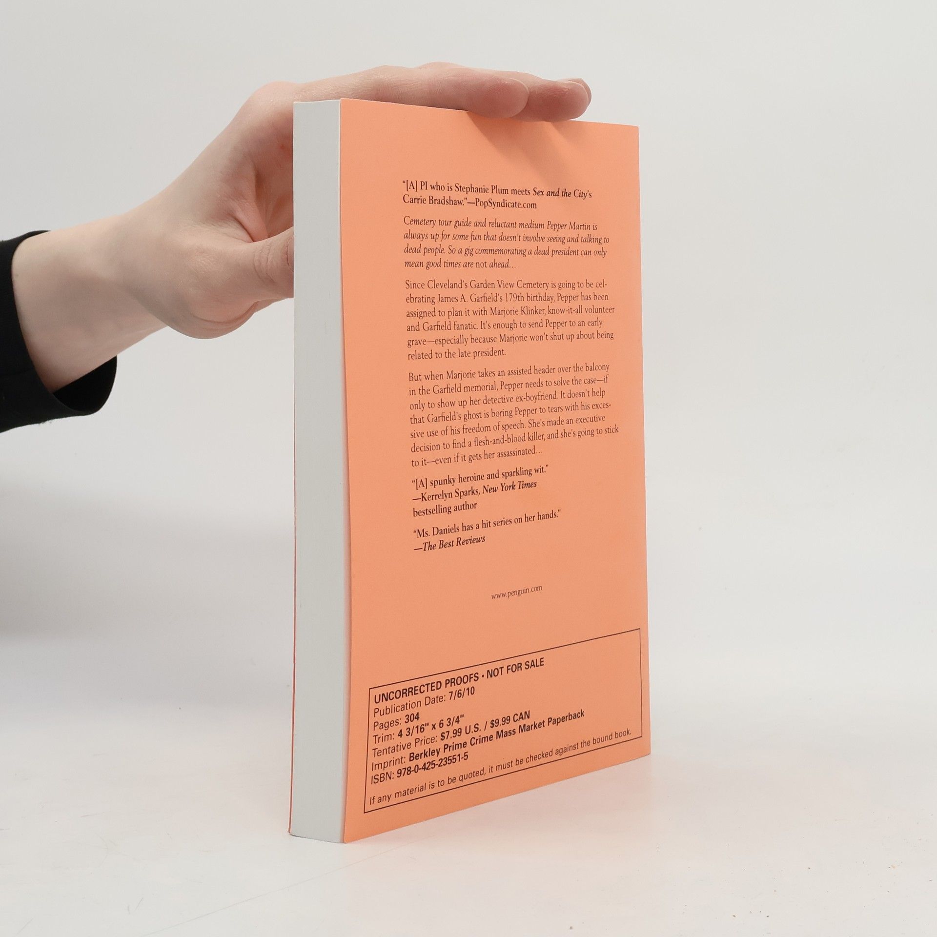 Cemeteries come alive for amateur sleuth/reluctant medium Pepper Martin. Cleveland's Garden View Cemetery is hosting a James A. Garfield commemoration. For tour guide and reluctant medium Pepper Martin this means that's she'll surely be hearing from the dead president himself. And when she's assigned to help plan the event with know-it-all volunteer and Garfield fanatic Marjorie Klinker, she'll wish Marjorie were dead... too bad someone beats Pepper to it.