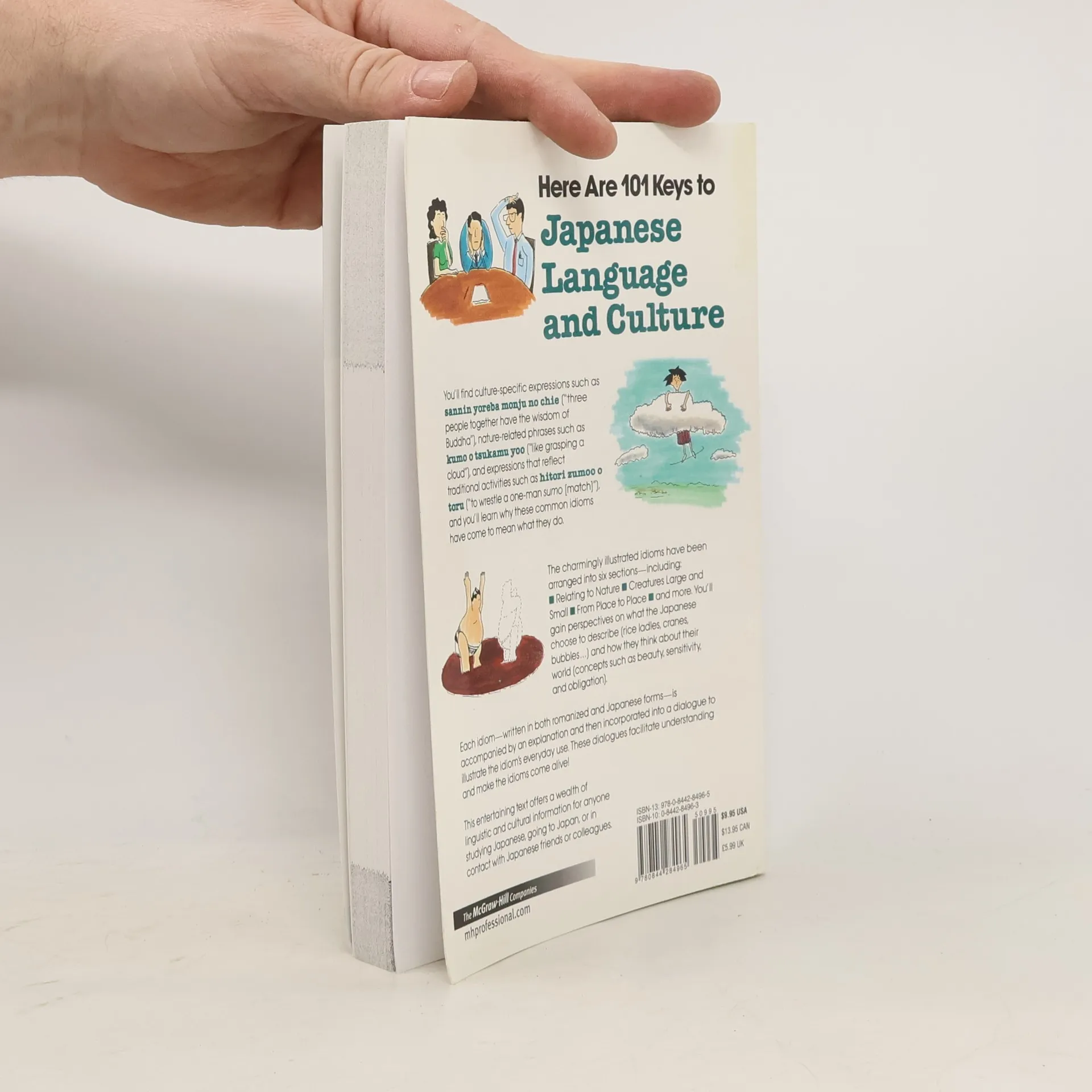 Features 101 Japanese idiomatic and proverbial expressions that aim to enrich students knowledge of Japanese language and culture. This book and audio program provide expressions in Japanese orthography and romanization, along with an illustration. The audiocassettes include readings of the dialogues to help improve students' pronunciation.