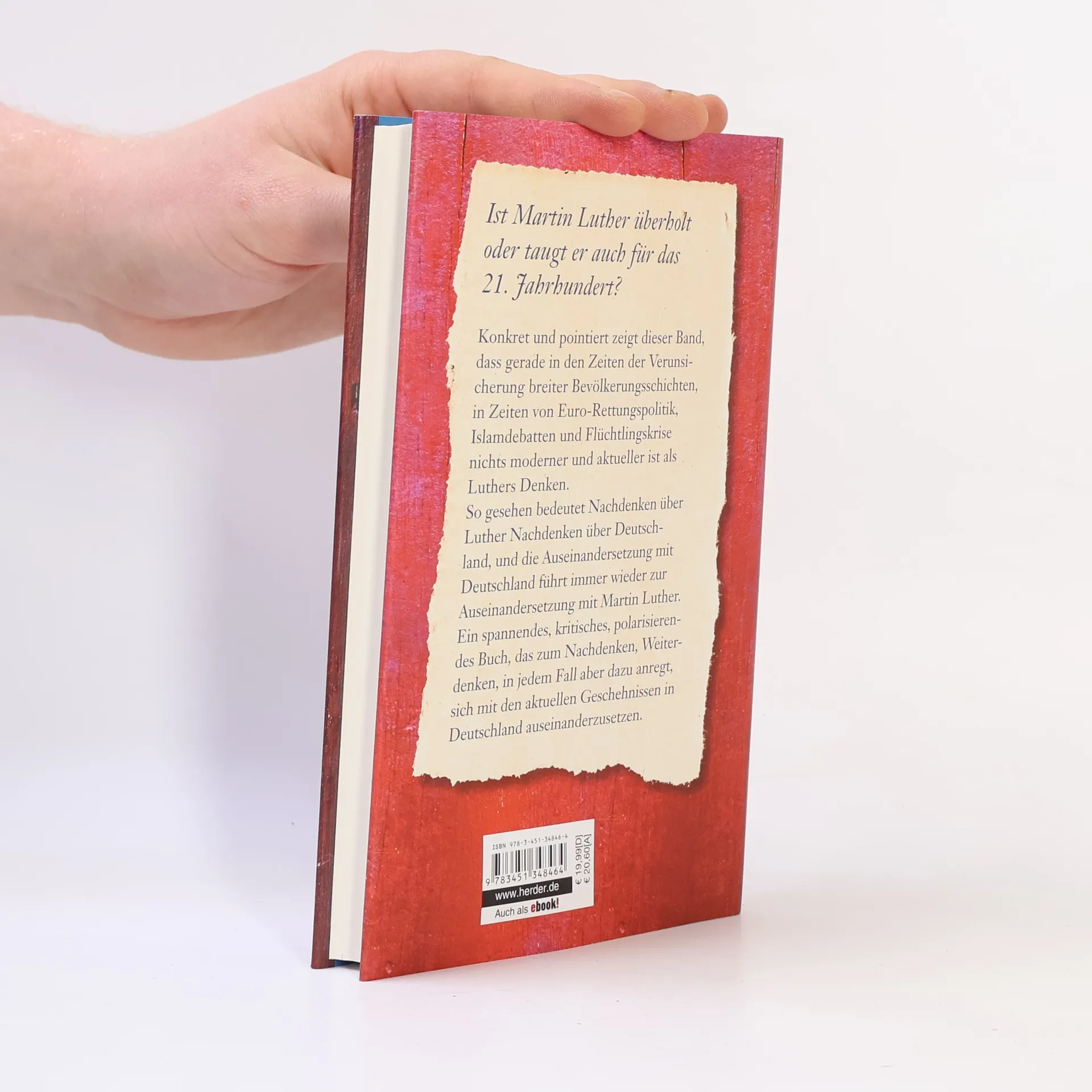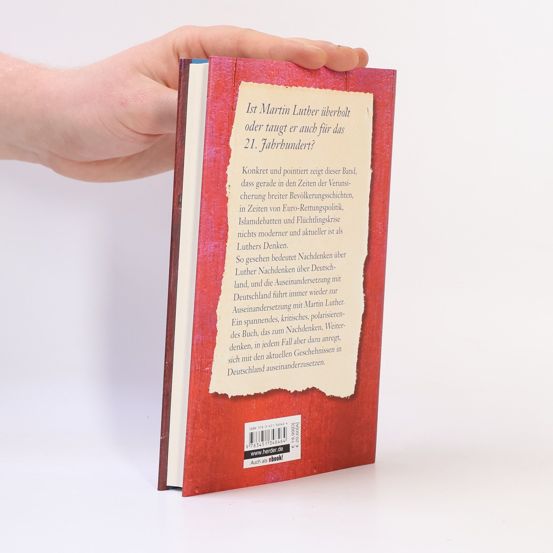 Ist Martin Luther überholt?Konkret und pointiert zeigt dieser Band, dass gerade in den Zeiten der Verunsicherung breiter Bevölkerungsschichten, in Zeiten von Euro-Rettungspolitik, Islamdebatten und Flüchtlingskrise nichts moderner und aktueller ist als Luthers Denken. So gesehen bedeutet Nachdenken über Luther Nachdenken über Deutschland, und die Auseinandersetzung mit Deutschland führt immer wieder zur Auseinandersetzung mit Martin Luther. Ein spannendes, kritisches, polarisierendes Buch, das zum Nachdenken, Weiterdenken, in jedem Fall aber dazu anregt, sich mit den aktuellen Geschehnissen in Deutschland auseinanderzusetzen."In Zeiten großer Veränderungen bedeutet verantwortlich zu handeln, an die Wurzel (lateinisch radix) zu gehen, wenn man nicht eines Tages als Sklave der Entwicklung aufwachen möchte, sondern sie als Bürger eines demokratischen Staates mitbestimmen will. Radikal sein heißt also, die grundsätzlichen Fragen zu stellen. In diesem Sinn war Luther radikal, sich ihm zu nähern, von ihm für die Gegenwart zu lernen erfordert, radikal zu denken, verlangt, bis zu den Ursachen vorzudringen, sich nicht von Sprach- und Denkkonventionen abhalten zu lassen. Ich wünsche mir, dass der Leser über Fragen, Befunde, Analysen, Thesen, Prognosen, Vorschläge und Befürchtungen vorurteilsfrei nachdenkt, sie mit seinen Erfahrungen vergleicht, auch in Widerstreit mit den Thesen des Buches gerät, nicht aber in das alte so unfruchtbare wie überflüssige Einordnungsspiel zurückfällt. Besser als die alten Spiele zu spielen, ist es, neue Antworten zu finden, die den Streit in der Sache voraussetzen." (Klaus-Rüdiger Mai)