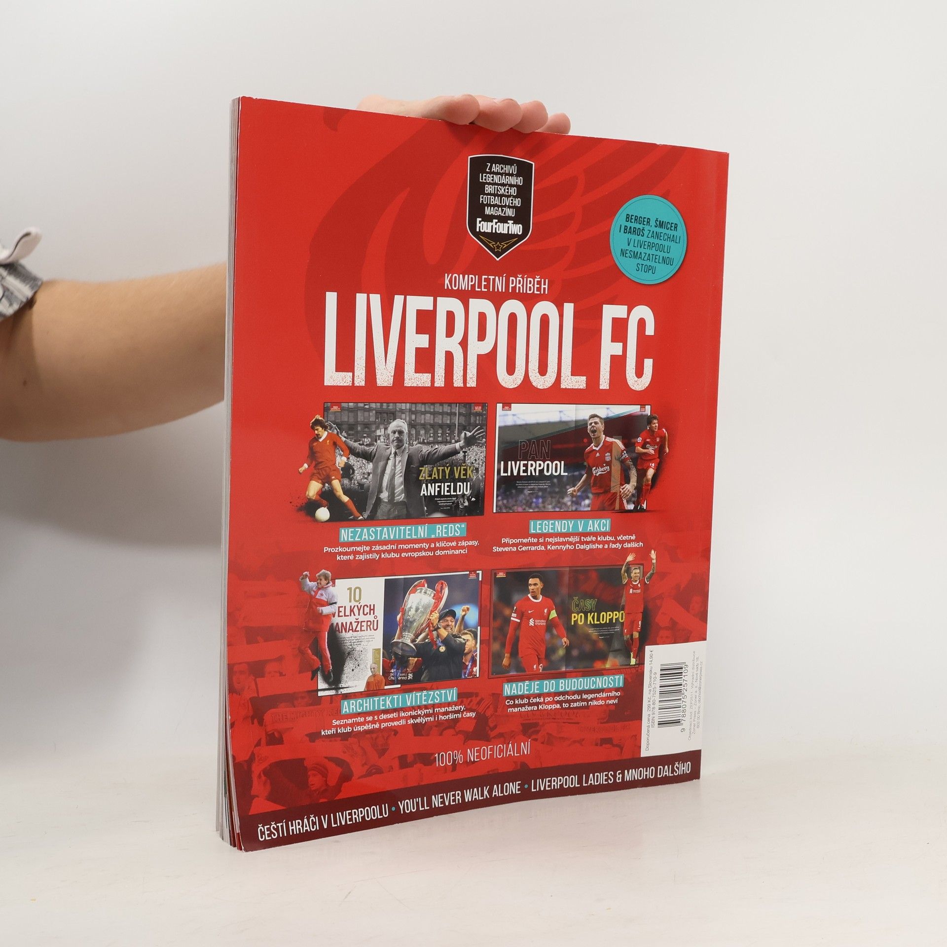 Historie ikonického fotbalového klubu zůstává již od svého vzniku v roce 1892 neodmyslitelně spjatá s pulzujícím přístavním městem na řece Mersey. Liverpool své hrdiny, kteří se stali nejen synonymem fantastického sportovního úspěchu, ale také nedílnou součástí jeho bohaté kulturní historie, oslavuje v ulicích a k jejich poctě zdobí rozlehlé venkovní plochy epickými nástěnnými malbami. Věrné fanoušky Reds pak spojuje obdivuhodný pocit vzájemnosti a nepokořitelný sportovní duch, hrdost na jejich klub jim proudí v žilách a naplňuje jejich srdce vírou ve vítězství. Jak dokázala jediná sportovní organizace podnítit ve svých příznivcích takto neochvějnou oddanost a bezvýhradnou podporu, která jí opakovaně umožnila vzlétnout k závratným výšinám fotbalového nebe? Odpověď na tyto i další otázky najdete na následujících stranách. Seznámíte se s muži, kteří stáli u zrodu vítězného fotbalového soukolí. Prožijete největší triumfy, ale také nejtemnější tragédie v dějinách FC Liverpool. Setkáte se s nejlepšími hráči, již kdy oblékli rudý dres, ale nezapomeneme ani na fotbalové manažery, kteří je formovali. V neposlední řadě pak zjistíte, co by klubu mohla chystat nadcházející léta. Příběh FC Liverpool právě začíná. Staňte se součástí fotbalové komunity – a nikdy nebudete mít nouzi o spřízněné duše!