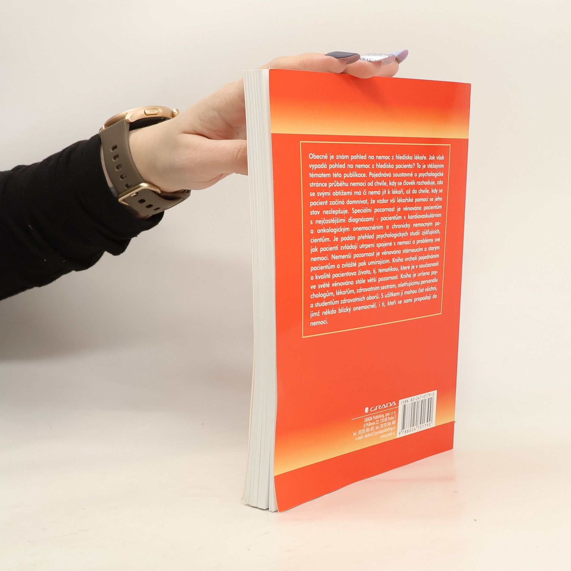Autor se snaží ukázat a popsat průběh nemoci tak, jak ho prožívá a jak se s ním vyrovnává pacient. Kniha ukazuje krok za krokem psychologickou stránku nemoci: od samotných počátků, kdy pacient přijímá fakt, že se něco děje, rozhoduje se pro návštěvu lékaře a snaží se vyrovnat s neradostnou skutečností. Každý jinak, každý po svém. A to je hlavním tématem knihy: ukázat nejčastější pacientovy postoje, reakce, typické rysy chování a psychické stavy. Pozornost je věnována problematice přijímání a zvládání bolesti, pobytu v nemocnici, otázkám interakce pacienta a lékaře. V centru zájmu stojí pacienti s nejčastější problematickou diagnózou - pacienti s onkologickým onemocněním, kardiovaskulárními chorobami a chronicky nemocní. Autor neopomíjí ani důležitou skupinu starých a umírajících pacientů. Knihu uzavírá kapitola o kvalitách života pacienta. Velmi pěkně, srozumitelně popsané. Odborné i chápavé (z hlediska pacienta). Jen rychle přejít od teorie k praxi a stanovené zásady komunikace s pacientem realizovat v zdravotnických zařízeních.