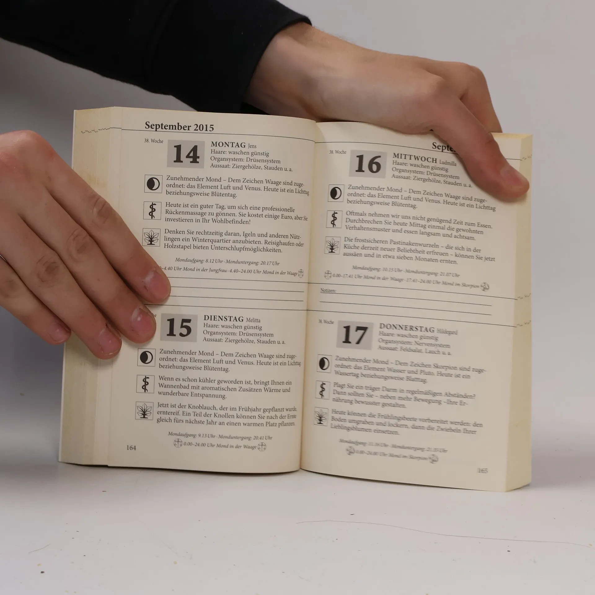 Seit jeher übt die Kraft des Mondes eine starke Faszination auf den Menschen aus. Und nicht nur das: Die Mondphasen beeinflussen unser tägliches Leben hier auf der Erde.§Dieser Kalender ist das Ergebnis alter Erfahrungen und Aufzeichnungen. Hier finden sich - für jeden Tag des Jahres 2015 und das erste Quartal des Folgejahres - wertvolle Hinweise und Vorschläge: für die Gesundheit, die Fitness, das Wohlbefinden und nicht zuletzt für die Pflanzen auf Balkon und im Garten.