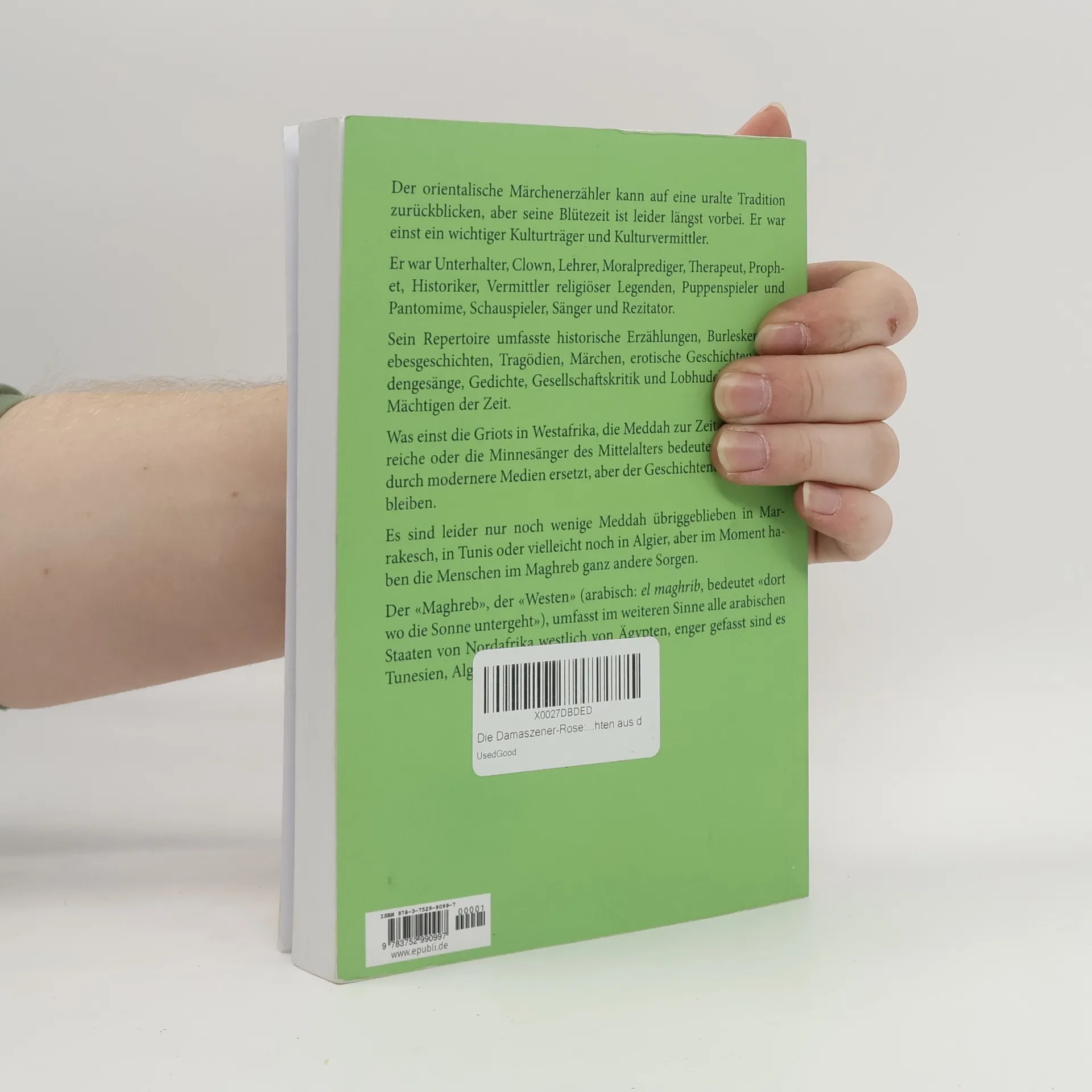 Der orientalische Märchenerzähler hat eine lange Tradition, war einst ein bedeutender Kulturvermittler und Unterhalter. Sein Repertoire umfasste vielfältige Erzählungen und Darbietungen. Heute sind nur noch wenige Meddah im Maghreb aktiv, während moderne Medien die Rolle des Geschichtenerzählers weitgehend übernommen haben.