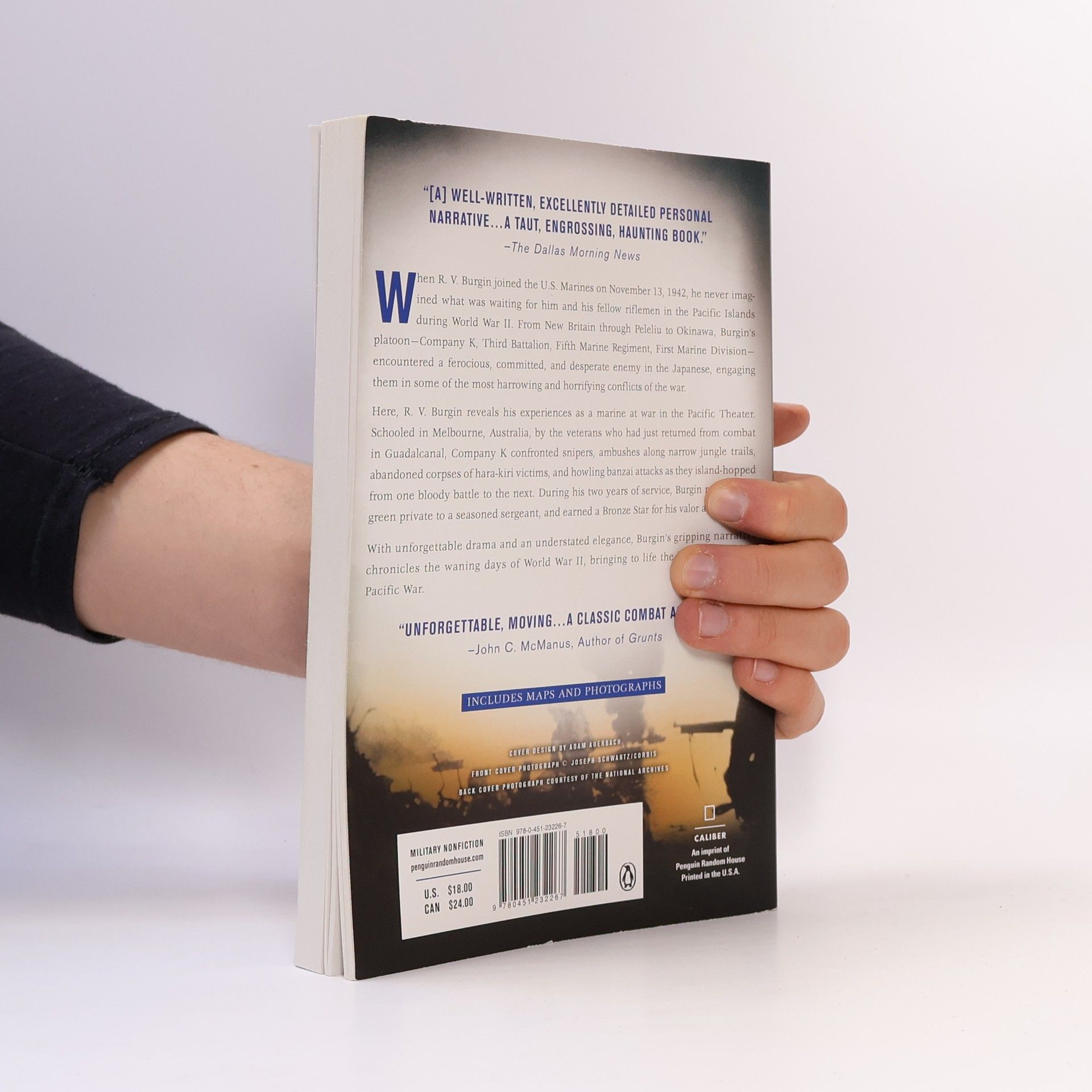 A remarkable eyewitness account of the most brutal combat of the Pacific War, from Peleliu to Okinawa, this is the true story of R.V. Burgin, the real-life World War II Marine Corps hero featured in HBO(R)'s The Pacific . "Read his story and marvel at the man...and those like him."--Tom Hanks When a young Texan named R.V. Burgin joined the Marines 1942, he never imagined what was waiting for him a world away in the Pacific. There, amid steamy jungles, he encountered a ferocious and desperate enemy in the Japanese, engaging them in some of the most grueling and deadly fights of the war. In this remarkable memoir, Burgin reveals his life as a special breed of Marine. Schooled by veterans who had endured the cauldron of Guadalcanal, Burgin's company soon confronted snipers, repulsed jungle ambushes, encountered abandoned corpses of hara-kiri victims, and warded off howling banzai attacks as they island-hopped from one bloody battle to the next. In his two years at war, Burgin rose from a green private to a seasoned sergeant, fighting from New Britain through Peleliu and on to Okinawa, where he earned a Bronze Star for valor. With unforgettable drama and an understated elegance, Burgin's gripping narrative stands alongside those of classic Pacific chroniclers like Robert Leckie and Eugene Sledge--indeed, Burgin was even Sledge's platoon sergeant. Here is a deeply moving account of World War II, bringing to life the hell that was the Pacific War.