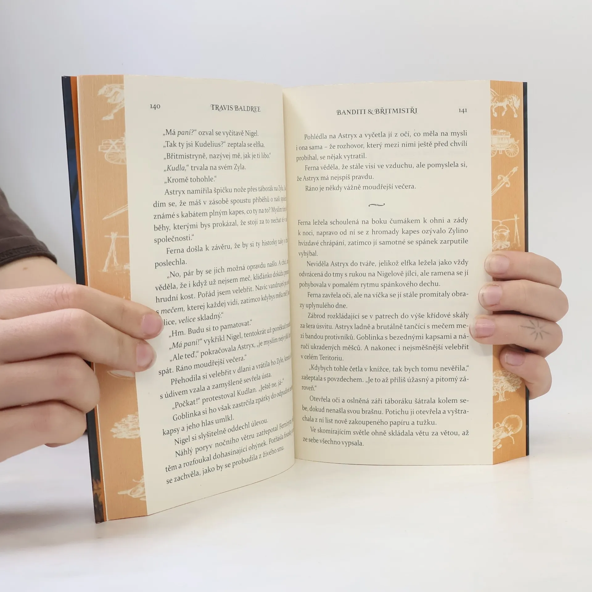 Vraťte se do útulného fantasy světa bestsellerové série Legends & Lattes s knihou Banditi a břitmistři od Travise Baldree, která přináší nová dobrodružství s oblíbenou, neomalenou knihovnicí Fern. Fern prožila klidné i bouřlivé chvíle v knihkupeckém životě po desetiletí, ale nyní, tváří v tvář paralyzující nudě, se přestěhuje do města Thune, aby otevřela svůj obchod vedle kavárny dlouho ztraceného přítele. Co by mohlo být lepší kombinací? Určitě okouzlující rekonstrukce vyléčí její trápení! Kdyby to bylo tak jednoduché... Oprava života není jednorázová záležitost a změna prostředí s novým nátěrem nestačí. Po opilé a zoufalé noci se Fern probudí daleko od domova v společnosti legendárního bojovníka, který přežívá na inercí, uvězněného chaos-goblina s láskou k příborům a s pořádnou kocovinou. Když společně čelí bandě zlosynů, kteří se snaží získat odměnu, kterou goblin představuje, Fern se možná konečně spojí s tím, kým skutečně je, když je možné cokoliv...
