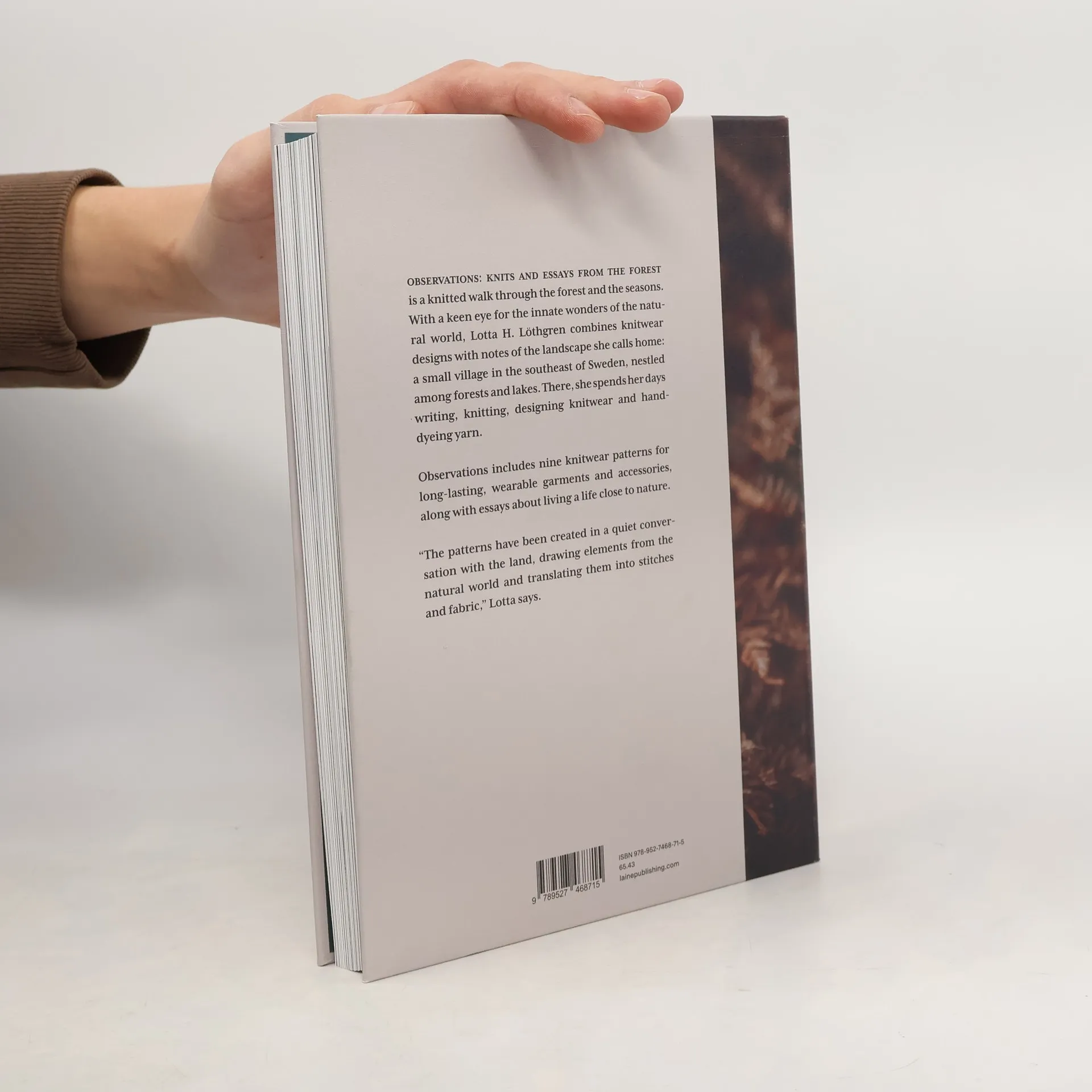 Lotta H. Löthgren combines knitwear designs with notes of the landscape she calls home: a small village in the southeast of Sweden, nestled among forests and lakes. Observations includes nine knitwear patterns for long-lasting, wearable garments and accessories, along with essays about living a life close to nature