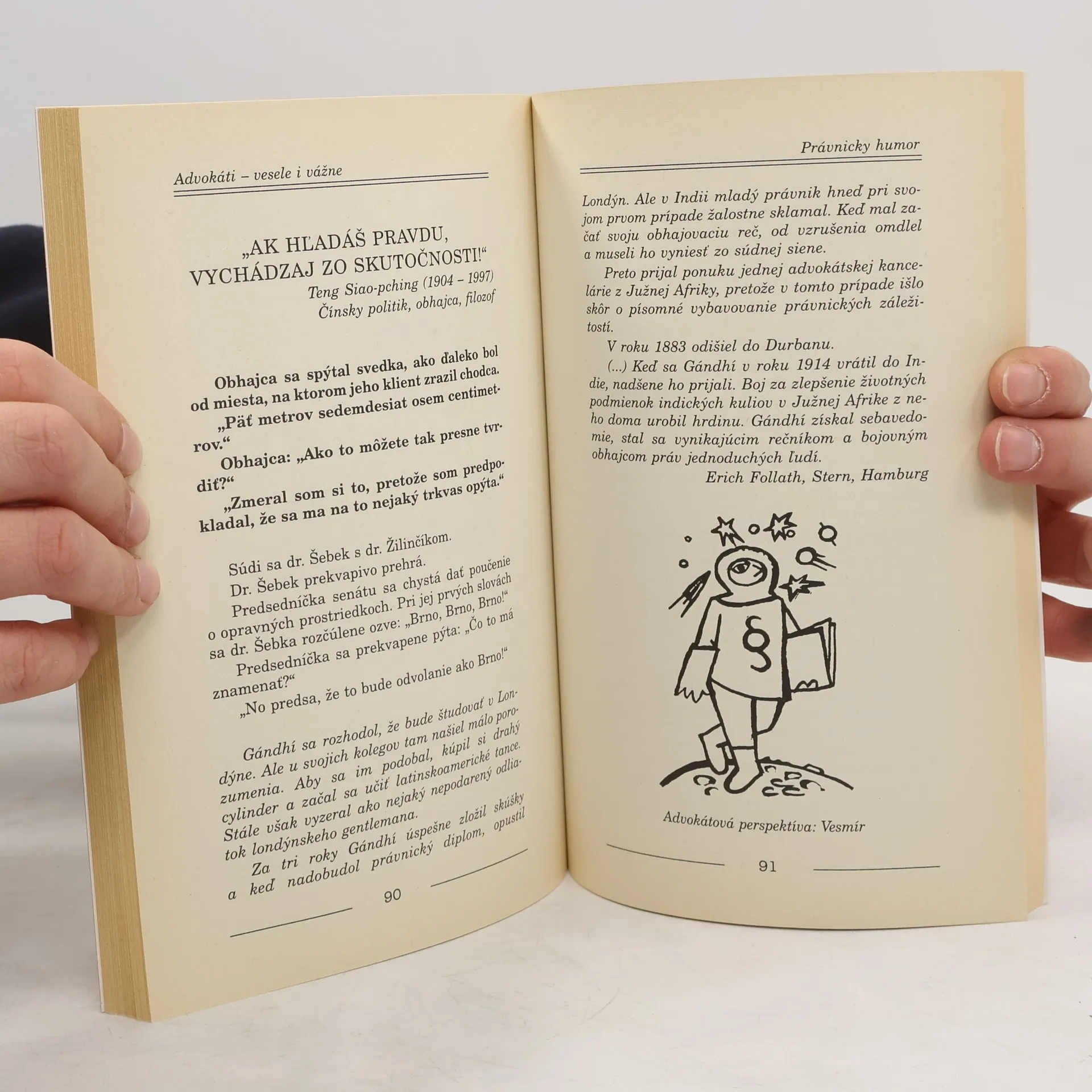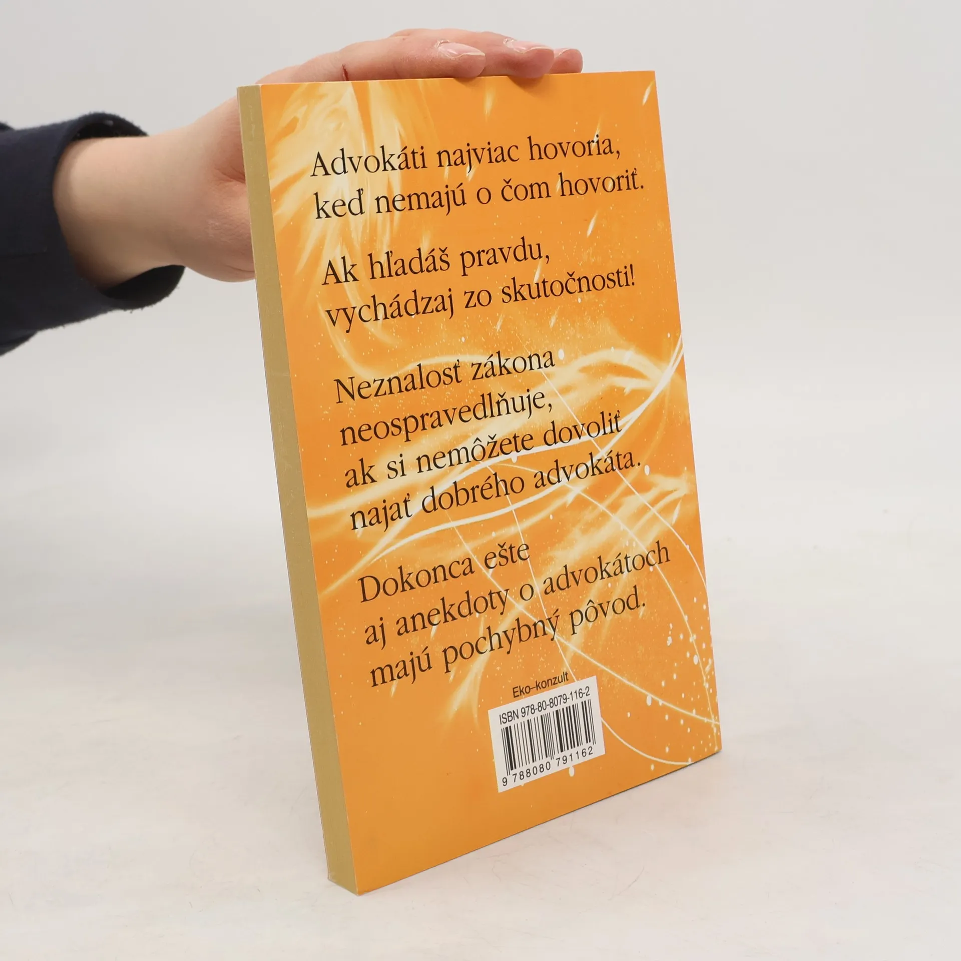 Humor je tak starý ako je staré i ľudstvo. Okrem zachovalých ústnych a písomných záznamov tento fakt potvrdzuje už P. Ovidius. Dočítate sa o advokátskom humore, v ktorom je niekedy skryté zúfalstvo, o sudcoch a práve, falšovaní peňazí, rozvodoch a o vraždách, podvodoch, cudzoložstve, úplatkárstve, zločinoch a znásilneniach. O tom všetkom sa píše veselo i vážne. Čo to sa dočítate i z histórie advokácie a súdnictva.