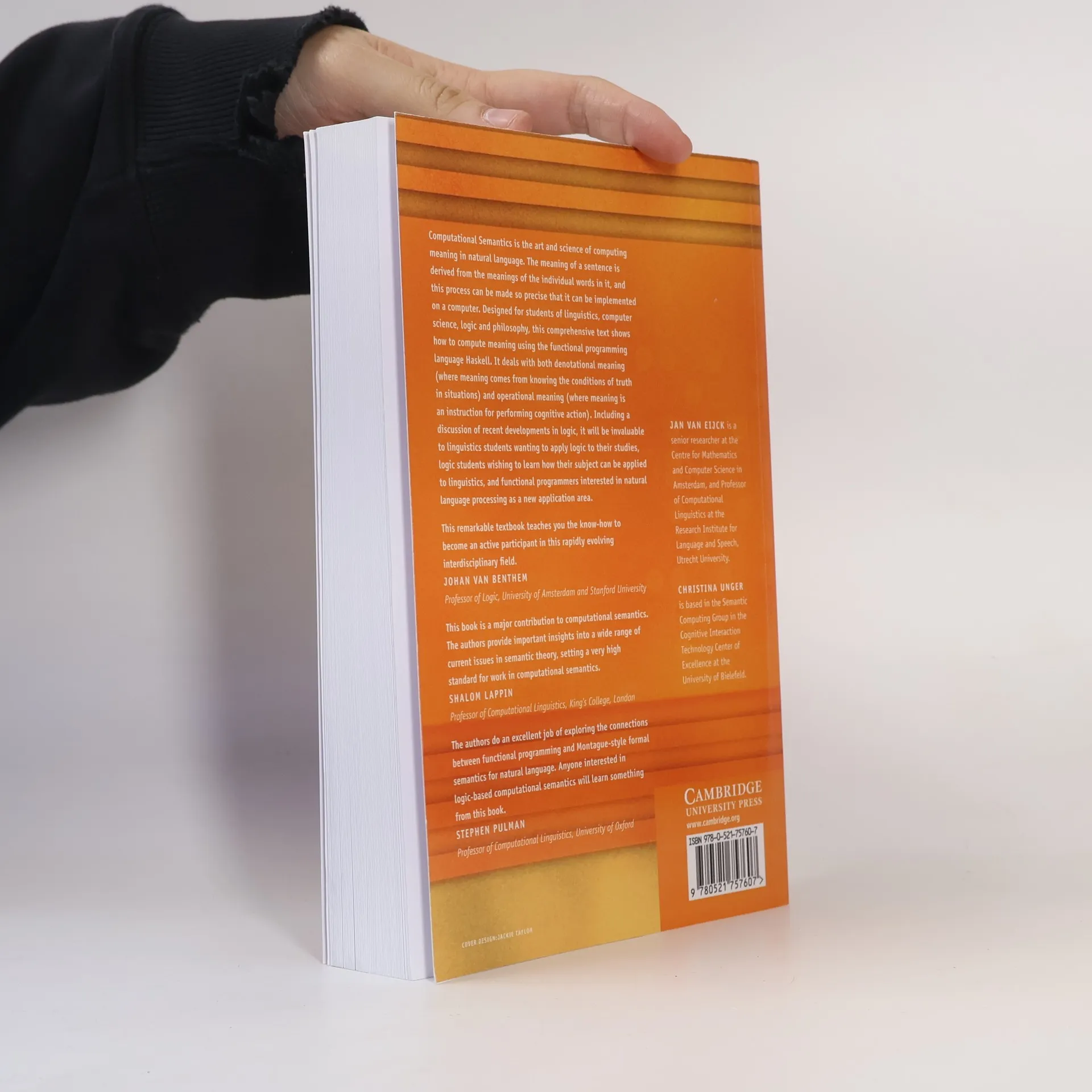 Computational semantics is the art and science of computing meaning in natural language. The meaning of a sentence is derived from the meanings of the individual words in it, and this process can be made so precise that it can be implemented on a computer. Designed for students of linguistics, computer science, logic and philosophy, this comprehensive text shows how to compute meaning using the functional programming language Haskell. It deals with both denotational meaning (where meaning comes from knowing the conditions of truth in situations), and operational meaning (where meaning is an instruction for performing cognitive action). Including a discussion of recent developments in logic, it will be invaluable to linguistics students wanting to apply logic to their studies, logic students wishing to learn how their subject can be applied to linguistics, and functional programmers interested in natural language processing as a new application area.