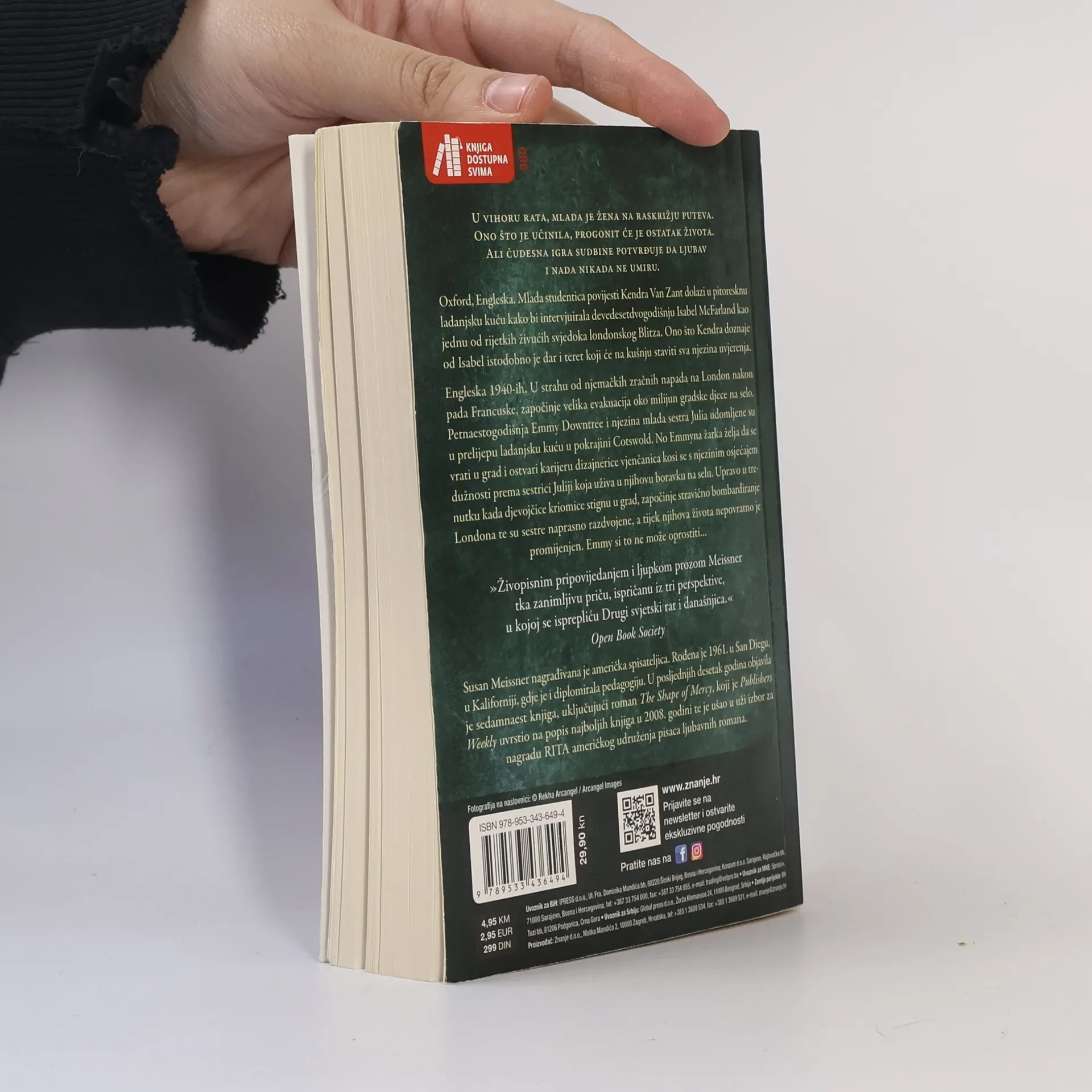 U vihoru rata, mlada je žena na raskrižju puteva. Ono što je učinila, progonit će je ostatak života. Ali čudesna igra sudbine potvrđuje da ljubav i nada nikada ne umiru. Oxford, Engleska. Mlada studentica povijesti Kendra Van Zant dolazi u pitoresknu ladanjsku kuću kako bi intervjuirala devedesetdvogodišnju Isabel McFarland kao jednu od rijetkih živućih svjedoka londonskog Blitza. Ono što Kendra doznaje od Isabel istodobno je dar i teret koji će na kušnju staviti sva njezina uvjerenja. Engleska 1940-ih. U strahu od njemačkih zračnih napada na London nakon pada Francuske, započinje velika evakuacija oko milijun gradske djece na selo. Petnaestogodišnja Emmy Downtree i njezina mlađa sestra Julia udomljene su u prelijepu ladanjsku kuću u pokrajini Cotswold. No Emmyna žarka želja da se vrati u grad i ostvari karijeru dizajnerice vjenčanica kosi se s njezinim osjećajem dužnosti prema sestrici Juliji koja uživa u njihovu boravku na selu. Upravo u trenutku kada djevojčice kriomice stignu u grad, započinje stravično bombardiranje Londona te su sestre naprasno razdvojene, a tijek njihova života nepovratno je promijenjen. Emmy si to ne može oprostiti…