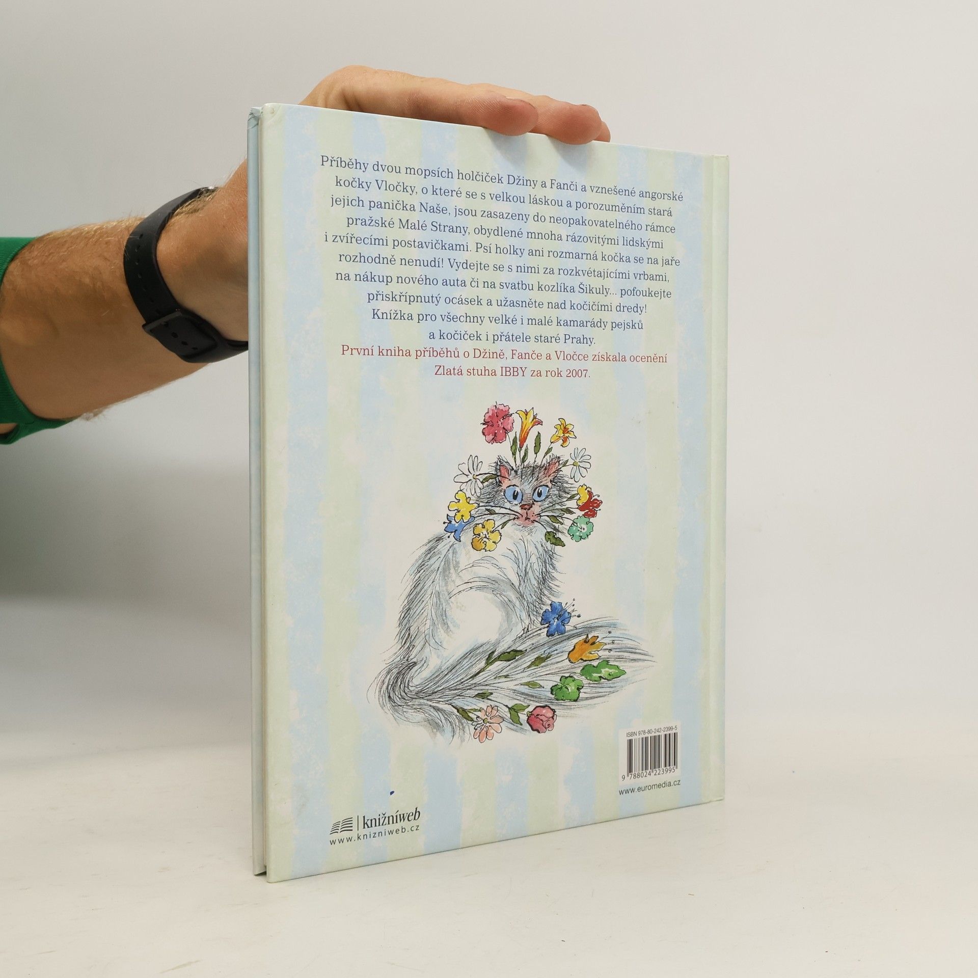 Příběhy dvou mopsích holčiček Džiny a Fanči a vznešené angorské kočky Vločky, o které se s velkou láskou a porozuměním stará jejich panička Naše, jsou zasazeny do neopakovatelného rámce pražské Malé Strany, obydlené mnoha rázovitými lidskými i zvířecími postavičkami. Psí holky ani rozmarná kočka se na jaře rozhodně nenudí! Vydejte se s nimi za rozkvétajícími vrbami, na nákup nového auta či na svatbu kozlíka Šikuly... pofoukejte přiskřípnutý ocásek a užasněte nad kočičími dredy! Knížku pro všechny velké i malé kamarády pejsků a kočiček i přátele staré Prahy. zdroj: www.bux.cz