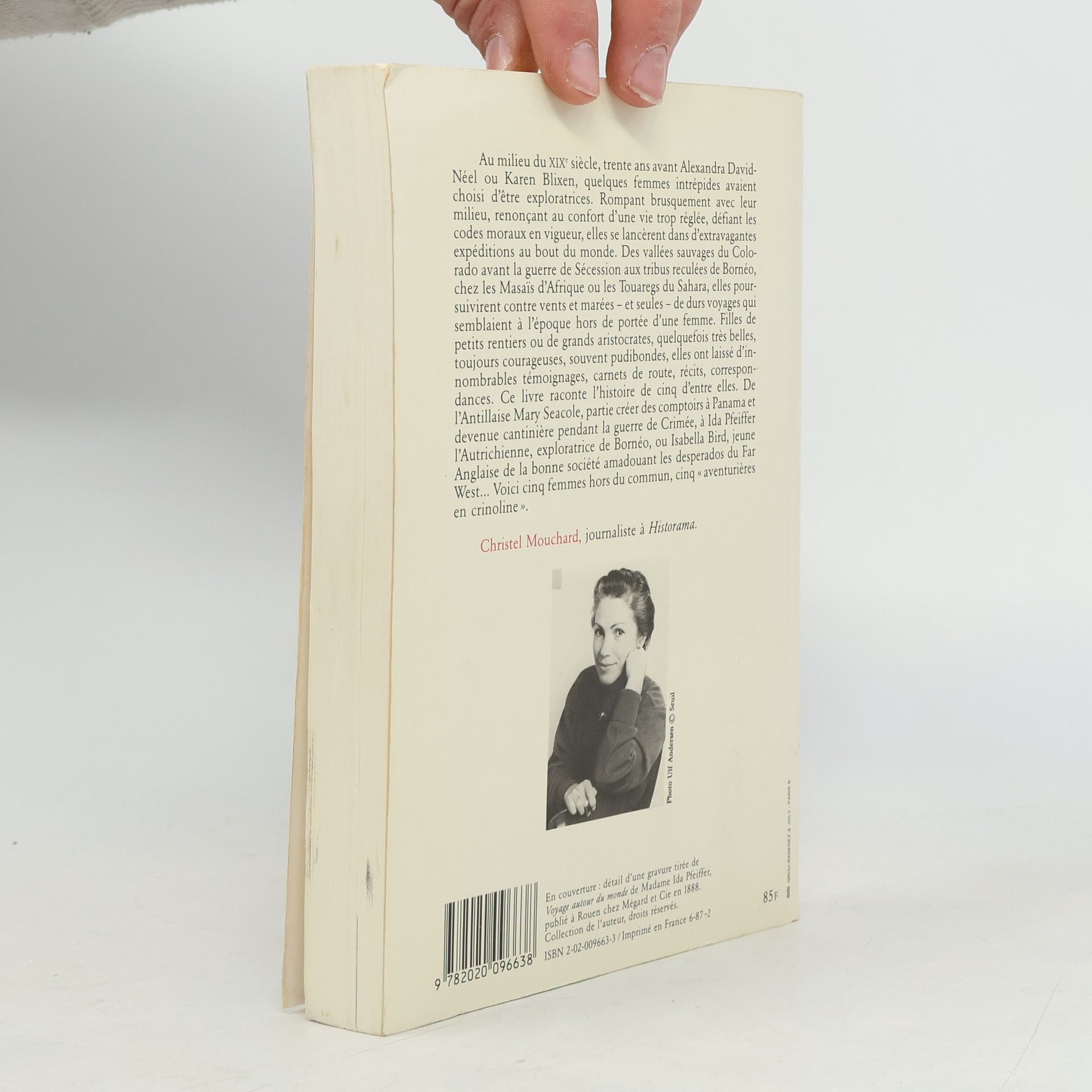 Aventurières en crinoline Bien avant Alexandra David-Néel ou Karen Blixen, quelques femmes intrépides ont choisi d'être exploratrices. Rompant avec leur milieu, renonçant aux convenances, elles se lancent dans d'extravagantes expéditions au bout du monde. Christel Mouchard retrace l'histoire de cinq d'entre elles, filles de petits rentiers ou de grands aristocrates, parfois belles, souvent pudibondes, toujours courageuses. De l'Antillaise Mary Seacole partie créer des comptoirs à Panama et devenue cantinière pendant la guerre de Crimée à la riche Américaine May Sheldon qui s'autoproclame " Reine Blanche " de l'Afrique, en passant par Ida Pfeiffer, rigide Autrichienne qui explore Bornéo, Alexine Tinne abattue par les Touaregs et Isabella Bird, Anglaise de la bonne société amadouant les desperados du Far-West, ce sont cinq femmes hors du commun. Cinq " aventurières en crinoline ".