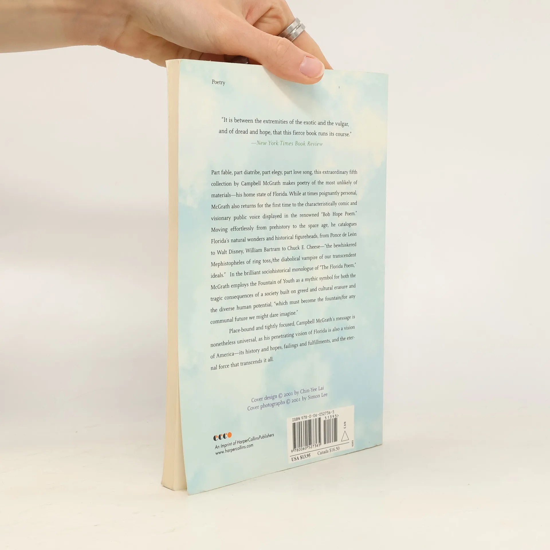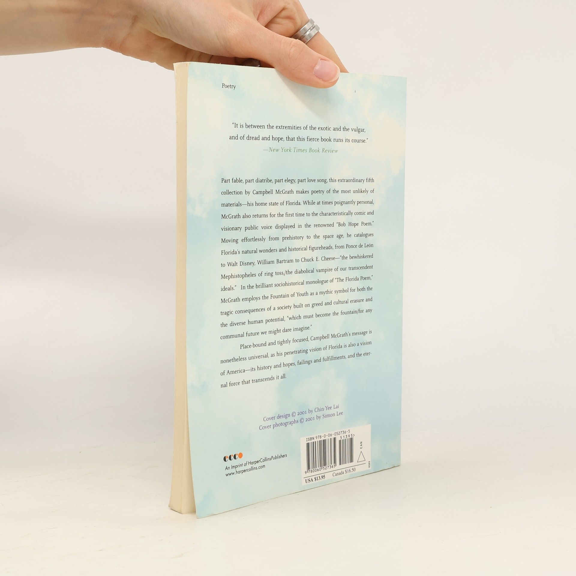 Part fable, part diatribe, part elegy, part love song, this extraordinary fifth collection by Campbell McGrath makes poetry of the most unlikely of materials -- his home state of Florida. While at times poignantly personal, McGrath also returns for the first time to the characteristically comic and visionary public voice displayed in the renowned "Bob Hope Poem." Moving effortlessly from prehistory to the space age, he catalogues Florida's natural wonders and historical figureheads, from Ponce de León to Walt Disney, William Bartram to Chuck E. Cheese -- "the bewhiskered Mephistopheles of ring toss,/the diabolical vampire of our transcendent ideals." In the brilliant sociohistorical monologue of "The Florida Poem," McGrath employs the Fountain of Youth as a mythic symbol for both the tragic consequences of a society built on greed and cultural erasure and the diverse human potential, "which must become the fountain/for any communal future we might dare imagine." Place-bound and tightly focused, Campbell McGrath's message is nonetheless universal, as his penetrating vision of Florida is also a vision of America -- its history and hopes, failings and fulfillments, and the eternal force that transcends it all.