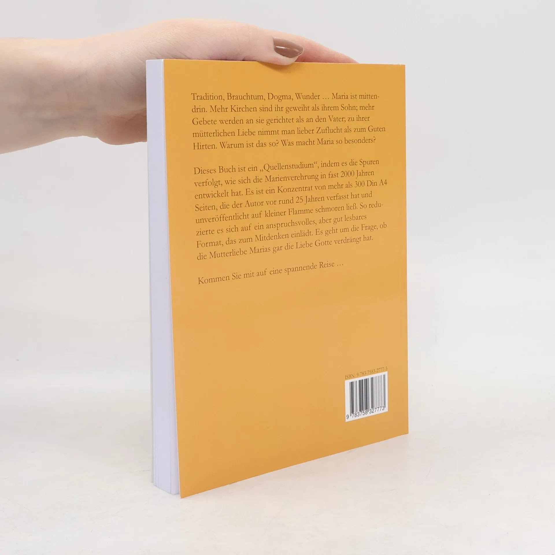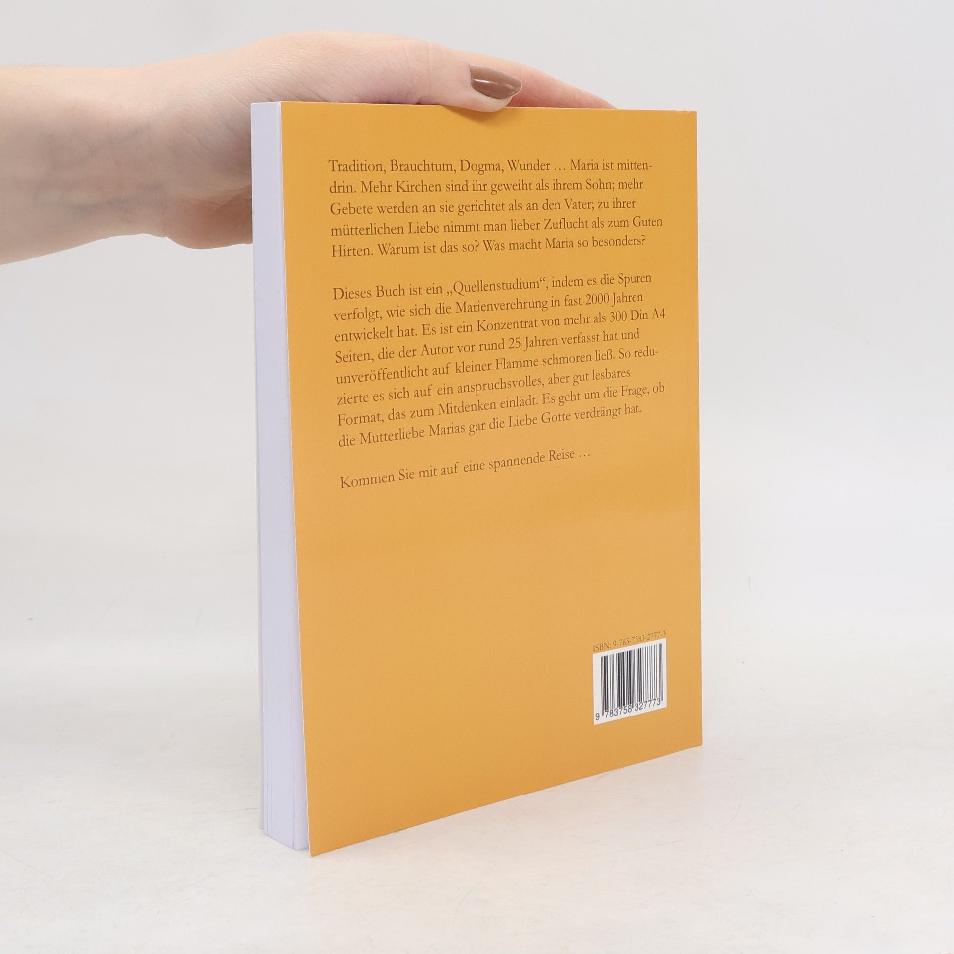 Tradition, Brauchtum, Dogma, Wunder ... Maria ist mittendrin. Mehr Kirchen sind ihr geweiht als ihrem Sohn; mehr Gebete werden an sie gerichtet als an den Vater; zu ihrer mütterlichen Liebe nimmt man lieber Zuflucht als zum Guten Hirten. Warum ist das so? Was macht Maria so besonders? Dieses Buch ist ein "Quellenstudium", indem es die Spuren verfolgt, wie sich die Marienverehrung in fast 2000 Jahren entwickelt hat. Es ist ein Konzentrat von mehr als 300 Din A4 Seiten, die der Autor vor rund 25 Jahren verfasst hat und unveröffentlicht auf kleiner Flamme schmoren ließ. So reduzierte es sich auf ein anspruchsvolles, aber gut lesbares Format, das zum Mitdenken einlädt. Es geht um die Frage, ob die Mutterliebe Marias gar die Liebe Gotte verdrängt hat. Kommen Sie mit auf eine spannende Reise!