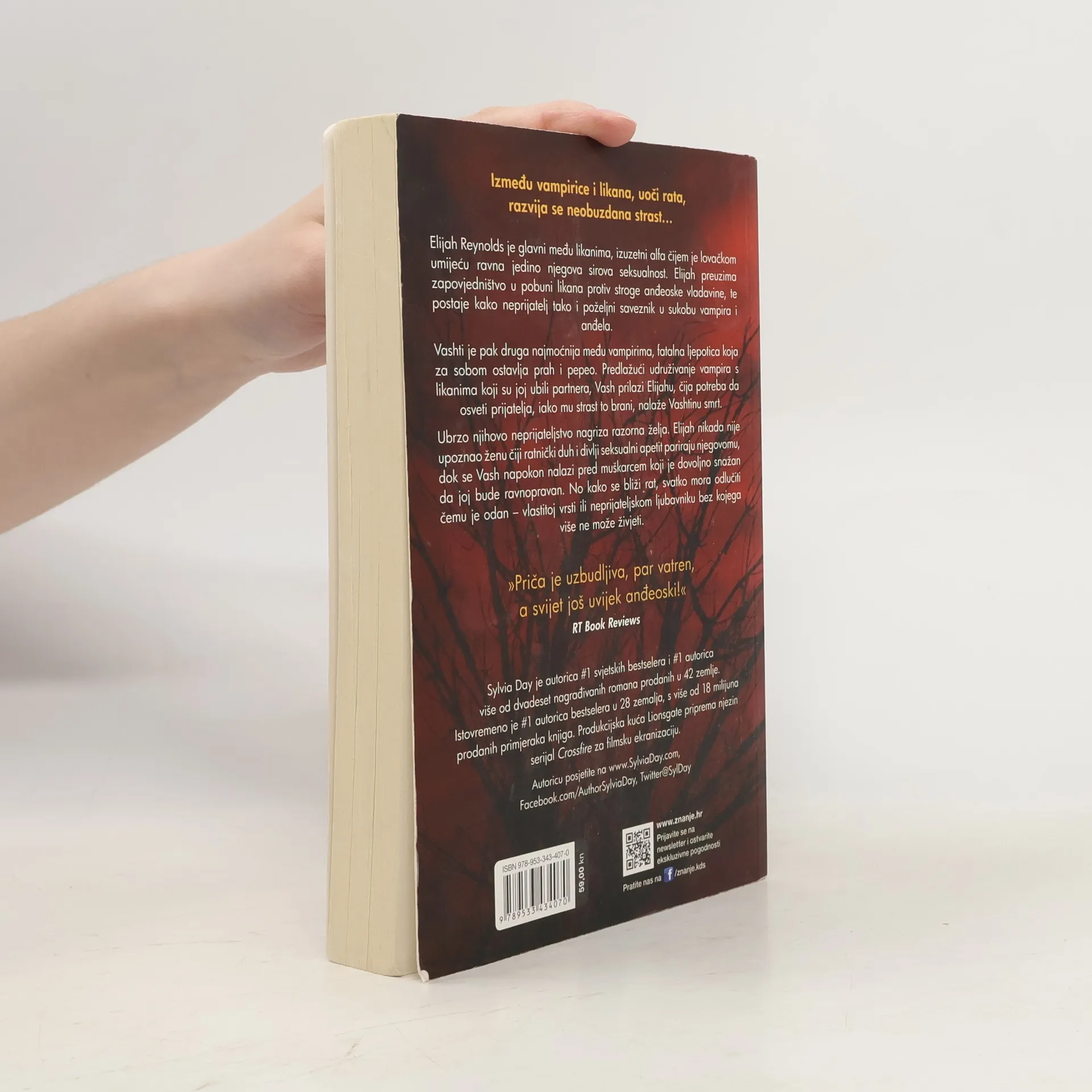 Između vampirice i likana, uoči rata, razvija se neobuzdana strast… Elijah Reynolds je glavni među likanima, izuzetni alfa čijem je lovačkom umijeću ravna jedino njegova sirova seksualnost. Elijah preuzima zapovjedništvo u pobuni likana protiv stroge anđeoske vladavine, te postaje kako neprijatelj tako i poželjni saveznik u sukobu vampira i anđela. Vashti je pak druga po moći među vampirima, fatalna ljepotica koja za sobom ostavlja prah i pepeo. Predlažući udruživanje vampira s likanima koji su joj ubili partnera, Vash prilazi Elijahu, čija potreba da osveti prijatelja, iako mu strast to brani, nalaže Vashtinu smrt. Ubrzo njihovo neprijateljstvo nagriza razorna želja. Elijah nikada nije upoznao ženu čiji ratnički duh i divlji seksualni apetit pariraju njegovomu, dok se Vash napokon nalazi pred muškarcem koji je dovoljno snažan da joj bude ravnopravan. No kako se bliži rat, svatko mora odlučiti čemu je odan – vlastitoj vrsti ili neprijateljskom ljubavniku bez kojega više ne može živjeti.