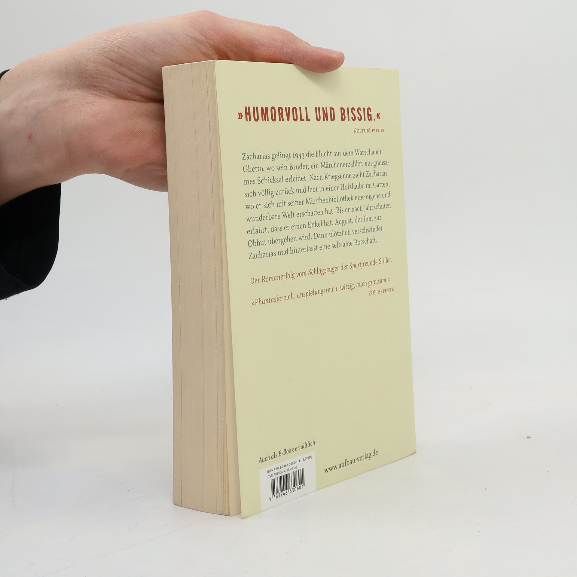 »Humorvoll und bissig.« KulturSpiegel Zacharias gelingt 1943 die Flucht aus dem Warschauer Ghetto, wo sein Bruder, ein Märchenerzähler, grausam ermordet wurde. Nach Kriegsende zieht er sich völlig zurück und lebt in einer Holzlaube im Garten, wo er sich mit seiner Märchenbibliothek eine eigene und wunderbare Welt erschaffen hat. Bis er nach Jahrzehnten erfährt, dass er einen Enkel hat, August, der ihm zur Obhut übergeben wird. Dann plötzlich verschwindet Zacharias und hinterlässt eine seltsame Botschaft. Der Romanerfolg vom Schlagzeuger der Sportfreunde Stiller. „Phantasiereich, anspielungsreich, witzig, auch grausam.“ ZDF Aspekte