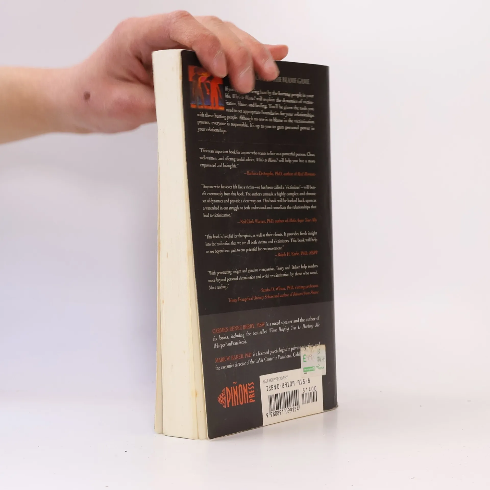 YOU CAN GET OUT OF THE BLAME GAME. If you're tired of being hurt by the hurting people in your life, Who's to Blame? will explain the dynamics of victimization, blame, and healing. You'll be given the tools you need to set appropriate boundaries for your relationships with these hurting people. Although no one is to blame in the victimization process, everyone is responsible. It's up to you to gain personal power in your relationships.