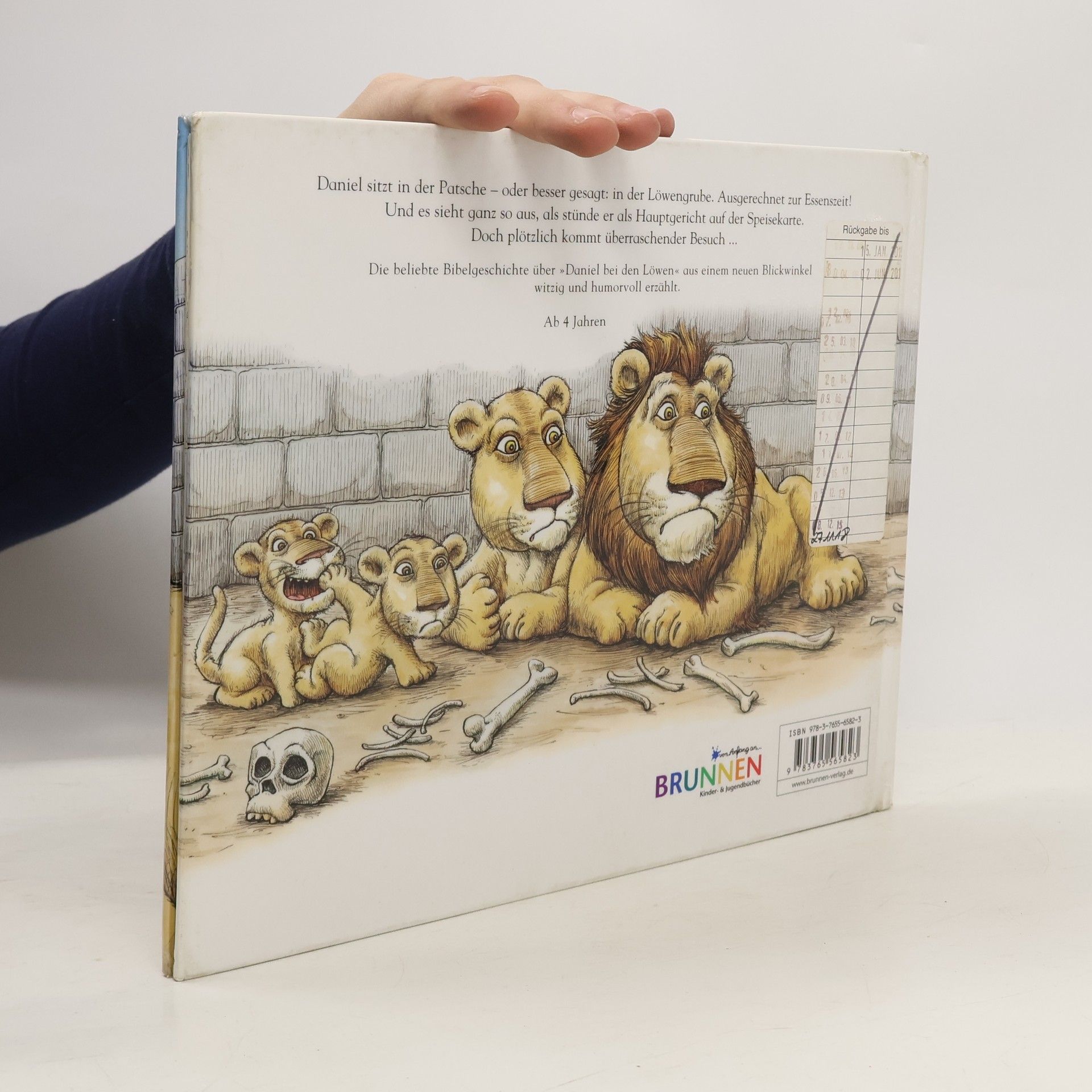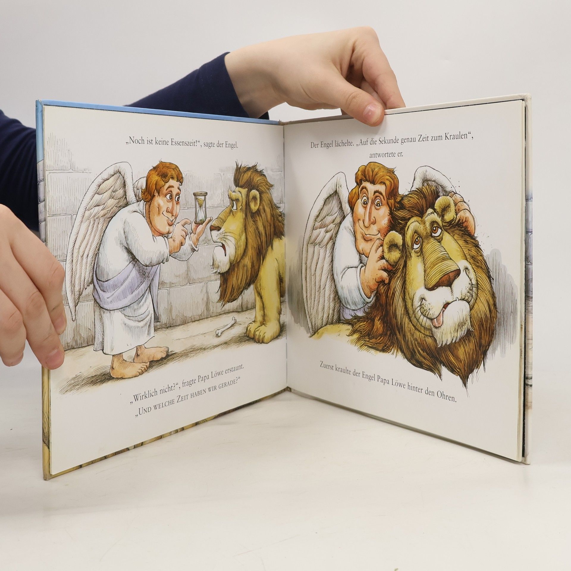 Daniel sitzt in der Patsche – oder besser gesagt: in der Löwengrube. Ausgerechnet zur Essenszeit! Und es sieht ganz so aus, als stünde er als Hauptgericht auf der Speisekarte der hungrigen Löwenfamilie. Doch Rettung naht, und zwar in Form eines großen, dicken Engels, der sich bestens mit Löwen auskennt. Dieses urkomische Bilderbuch erzählt die bekannte Bibelgeschichte über „Daniel bei den Löwen“ aus einem überraschenden und überaus humorvollen Blickwinkel.