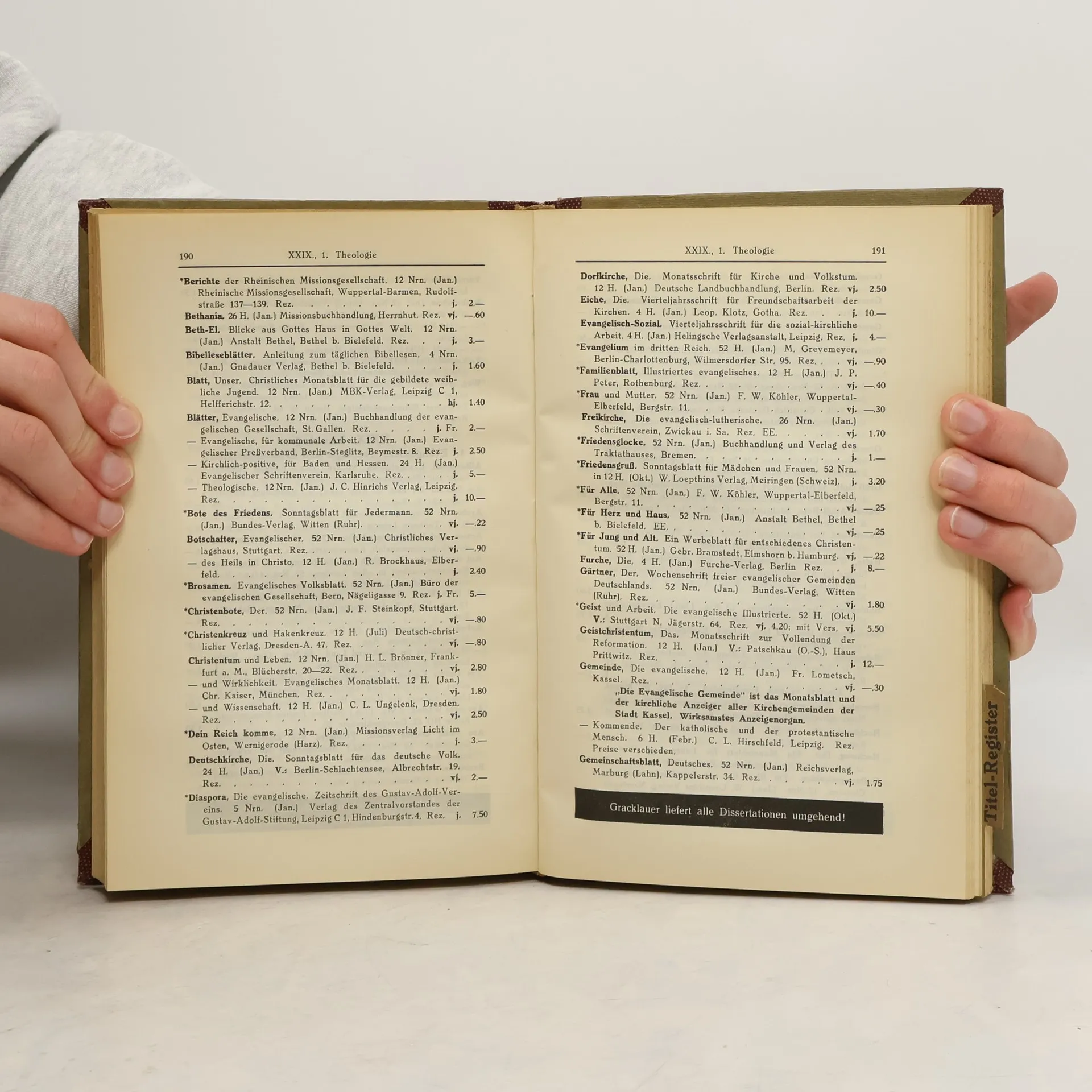 Gracklauers Zeitschriften-Katalog 1933-34, Herbert Goldacker