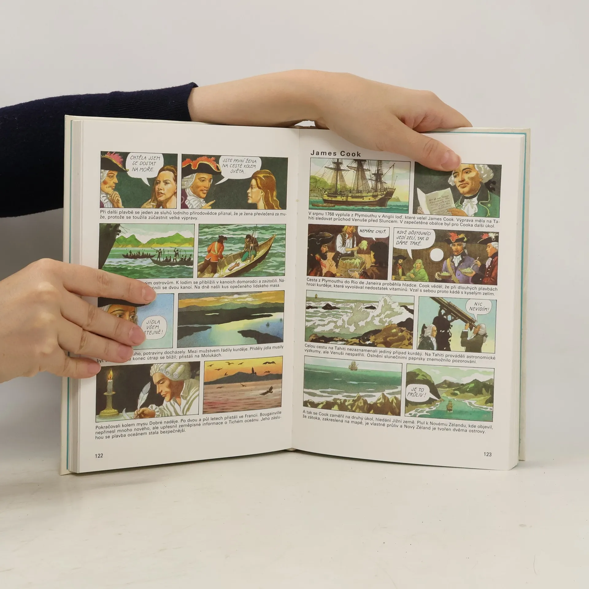 Barevné obrázky, stručný text a mapky seznamují mladého čtenáře s mnoha významnými objeviteli, dobyvateli a cestovateli.