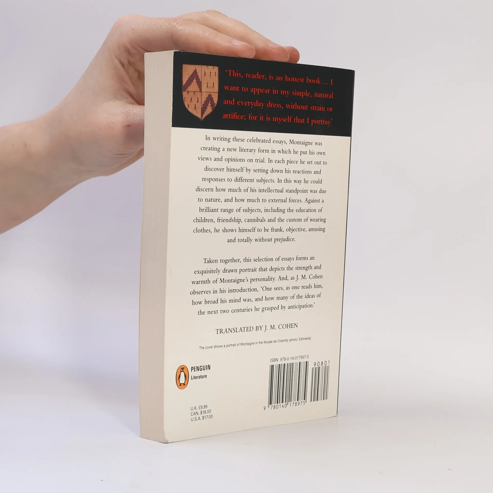 Translates selections from sixteenth-century French writer Michel de Montaigne's "Essays," a collection that presents Montaigne's philosophical opinions on a wide variety of subjects, including books, relationships, cruelty, and smells.