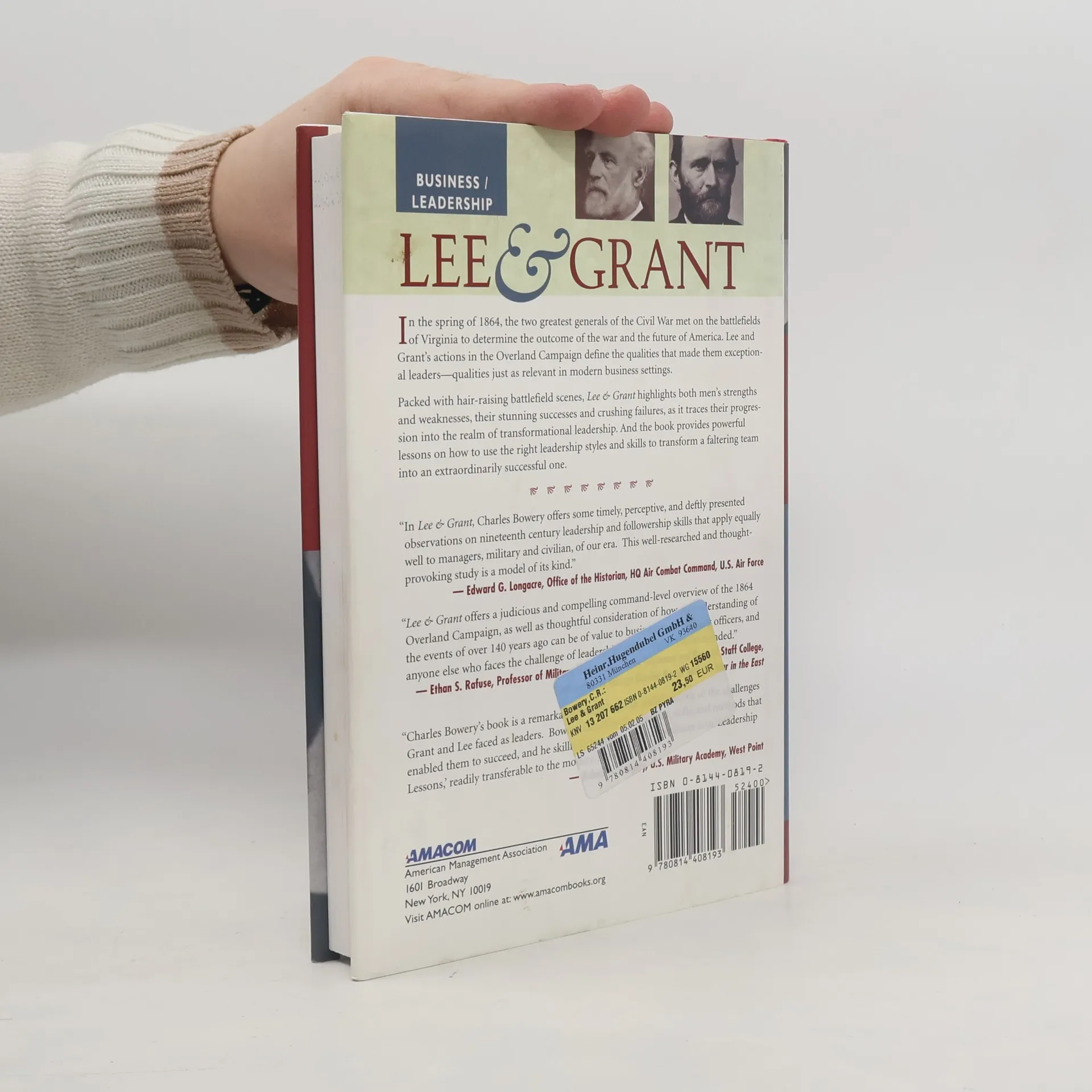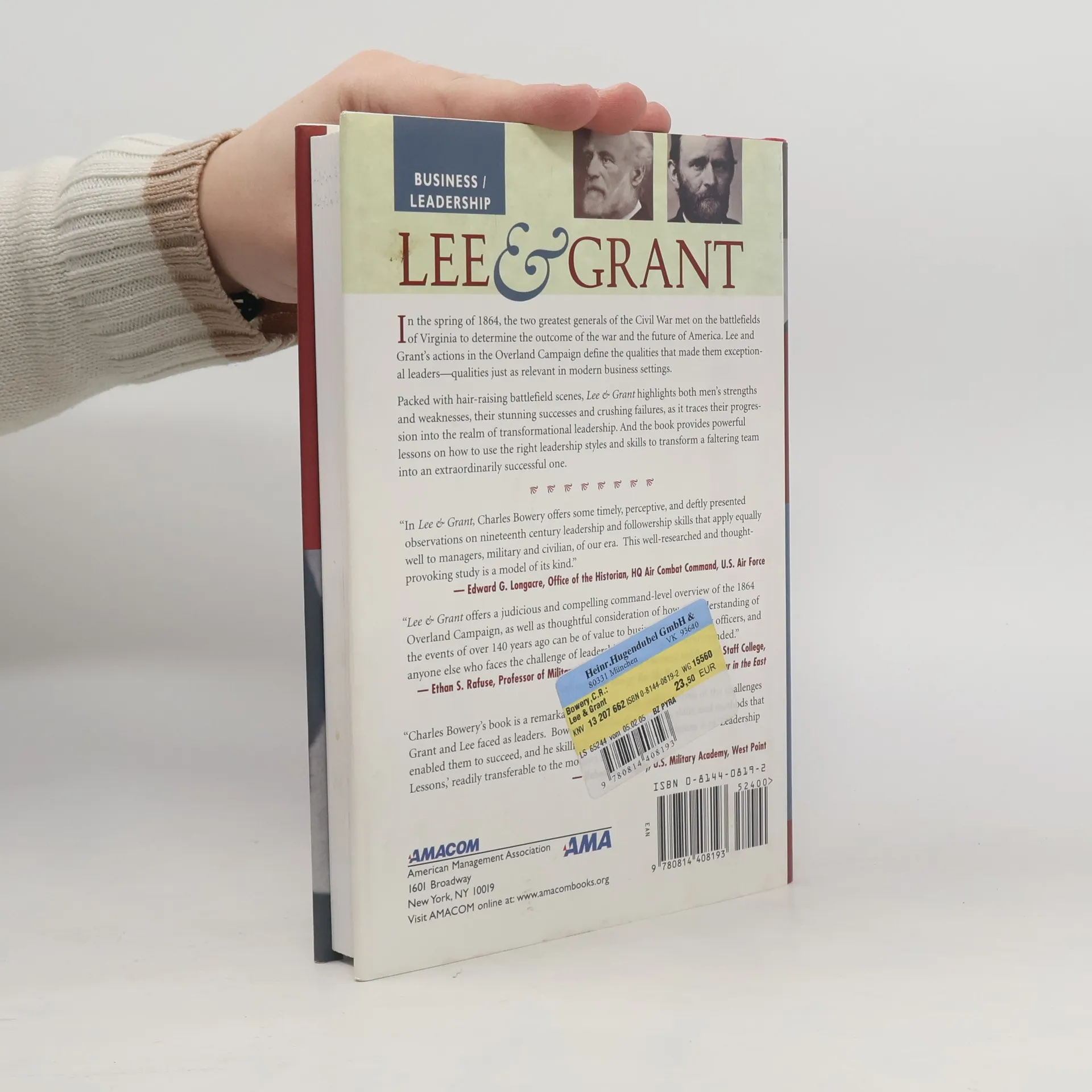 "The Overland Campaign of 1864 brought together the Civil War's two greatest commanders, Robert E. Lee and Ulysses S. Grant, in the longest, hardest-fought, and most destructive military campaign ever waged on the North American continent. Locked in deadly combat, Lee and Grant plotted, maneuvered, and pushed ferociously to win control of each conflict -- the Battle of the Wilderness, Spotsylvania, the North Anna, Cold Harbor -- and, ultimately, the nation.Lee & Grant combines a riveting historical account of the Overland Campaign with a fascinating, eye-opening study in leadership -- as powerful and relevant today as it was on the battlefields of Virginia. Stripping away many of the myths and hyperbole, Lee & Grant delivers a clear-headed account of their successes and failures, along with dozens of leadership lessons that managers and executives can put to use in any organization, including:Seek a center of gravity: Both Lee and Grant were adept at pinpointing their opponents' weak spots and designing plans to target them. Keeping your plans focused will help you avoid unnecessary, distracting efforts and expenses.Build a capable staff and let them help you: Challenge your staff to help you visualize and plan. Lee's reluctance to build a larger staff, or to include them in forming strategy, nearly destroyed him at the start of the war.Lead by example in true crisis situations: By intervening personally on the battlefield and inspiring passion in his troops, Lee was able to galvanize a retreating army at The Wilderness and turn what looked like a significant defeat into a stunning reversal of fortune.Know thyself! What is your preferred leadership style? What is your default mode under pressure? Do you naturally revert to micromanagement when worried about failure? A clear understanding of your own tendencies will help you make good decisions about leading others. Turn vision into action: Grant's simple but effective expression of what he wanted to do was the key ingredient to getting the Union army leaders finally working as a team.Stay the course: Don't let short-term setbacks derail a well-formed plan. It was dogged persistence that made Grant such a great general. In true Grant fashion, he used his tragic loss at Cold Harbor as a springboard to the next, ultimately decisive, phase of the war.Lee and Grant approached challenges in a fundamentally similar way. They called on skills learned through a lifetime of intellectual and practical preparation, applied those skills through carefully selected subordinates, and drove their armies forward with indomitable will and persistence. Imagine an organization headed by someone who combines the best traits and skills of these two exceptional generals -- unstoppable!"
