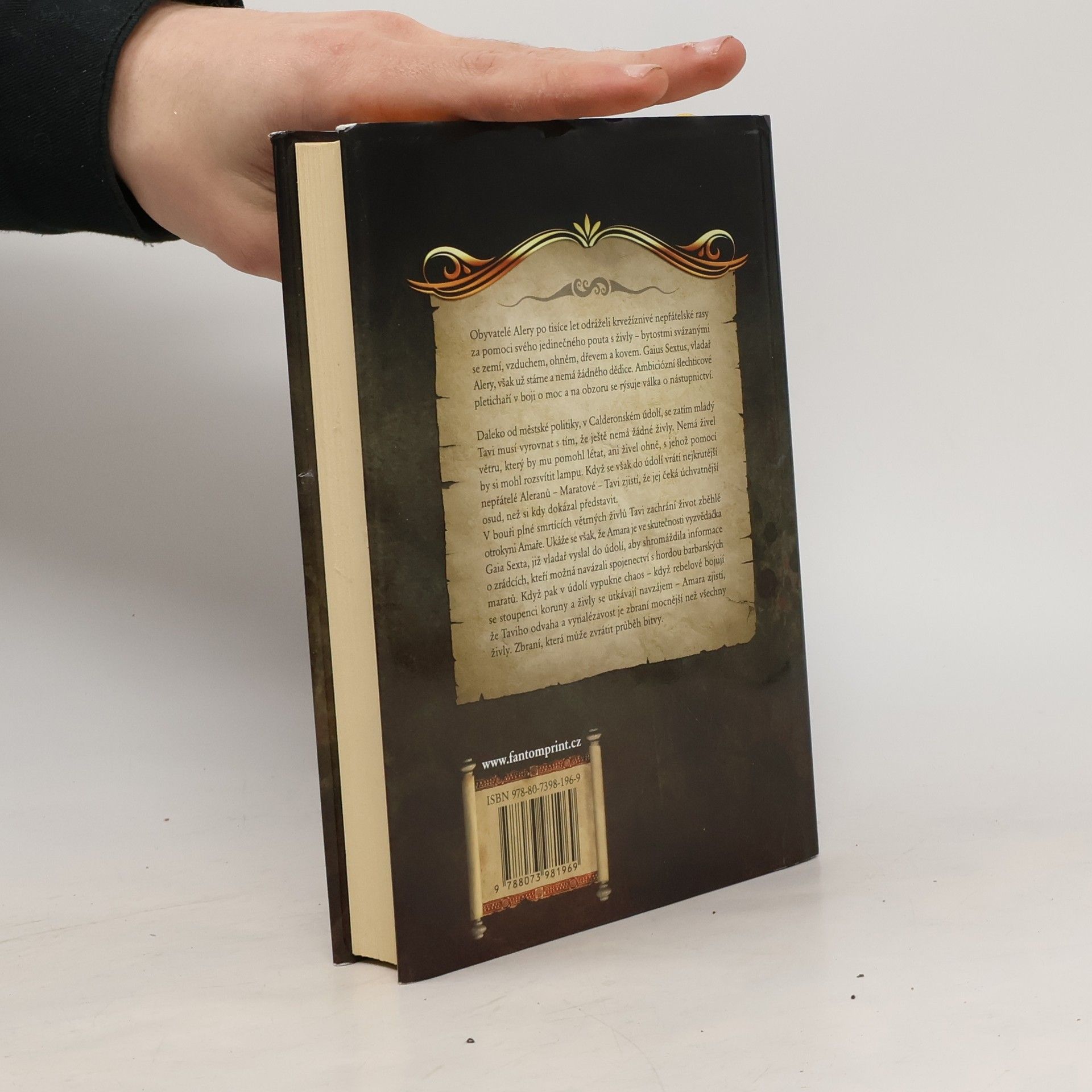 Obyvatelé Alery po tisíce let odráželi krvežíznivé nepřátelské rasy za pomoci svého jedinečného pouta s živly - bytostmi svázanými se zemí, vzduchem, ohněm, dřevem a kovem. Gaius Sextus, vladař Alery, však už stárne a nemá žádného dědice. Ambiciózní šlechticové pletichaří v boji o moc a na obzoru se rýsuje válka o nástupnictví. Daleko od městské politiky, v Calderonském údolí, se zatím mladý Tavi musí vyrovnat s tím, že ještě nemá žádné živly. Nemá živel větru, který by mu pomohl létat, ani živel ohně, s jehož pomocí by si mohl rozsvítit lampu. Když se však do údolí vrátí nejkrutější nepřátelé aleranů - maratové - Tavi zjistí, že jej čeká úchvatnější osud, než si kdy dokázal představit. V bouři plné smrtících větrných živlů Tavi zachrání život zběhlé otrokyni Amaře. Ukáže se však, že Amara je ve skutečnosti agentka Gaia Sexta, již vladař vyslal do údolí, aby shromáždila informace o zrádcích, kteří možná navázali spojenectví s hordou barbarských maratů. Když pak v údolí vypukne chaos - když rebelové bojují se stoupenci koruny a živly se utkávají navzájem - Amara zjistí, že Taviho odvaha a vynalézavost je zbraní mocnější než všechny živly. Zbraní, která může zvrátit průběh bitvy