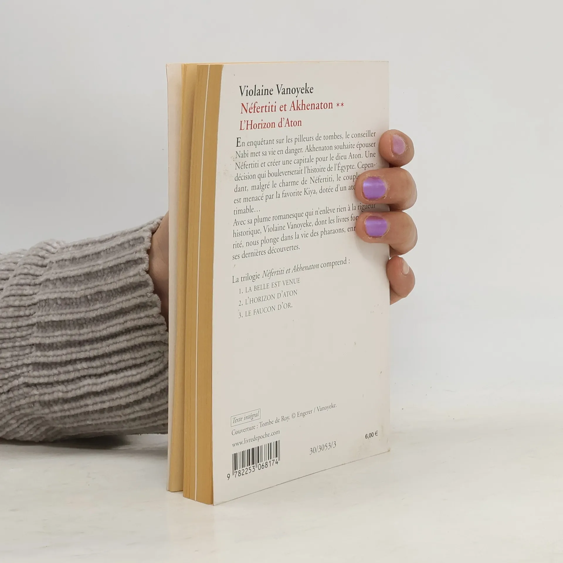 En enquêtant sur les pilleurs de tombes, le conseiller Nabi met sa vie en danger. Akhenaton souhaite épouser Néfertiti et créer une capitale pour le dieu Aton. Une décision qui bouleverserait l’histoire de l’Egypte. Cependant, malgré le charme de Néfertiti, le couple royal est menacé par la favorite Kiya, dotée d’un atout inestimable…Avec sa plume romanesque qui n’enlève rien à la rigueur historique, Violaine Vanoyeke, dont les livres font autorité, nous plonge dans la vie des pharaons, enrichie de ses dernières découvertes.La trilogie Néfertiti et Akhenaton comprend :1. la belle est venue2. l’horizon d’aton3. le faucon d’or.